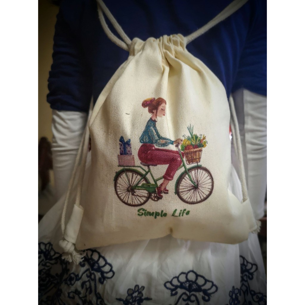 Canvas Drawstring Bag String Bag with Trendy Print Design