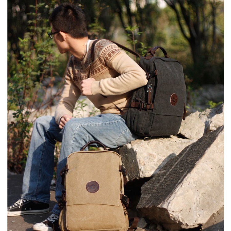 Canvas bag men retro backpack large capacity light wear-resistant outdoor bag notebook backpack college students high school school bag out of waterproof travel bag