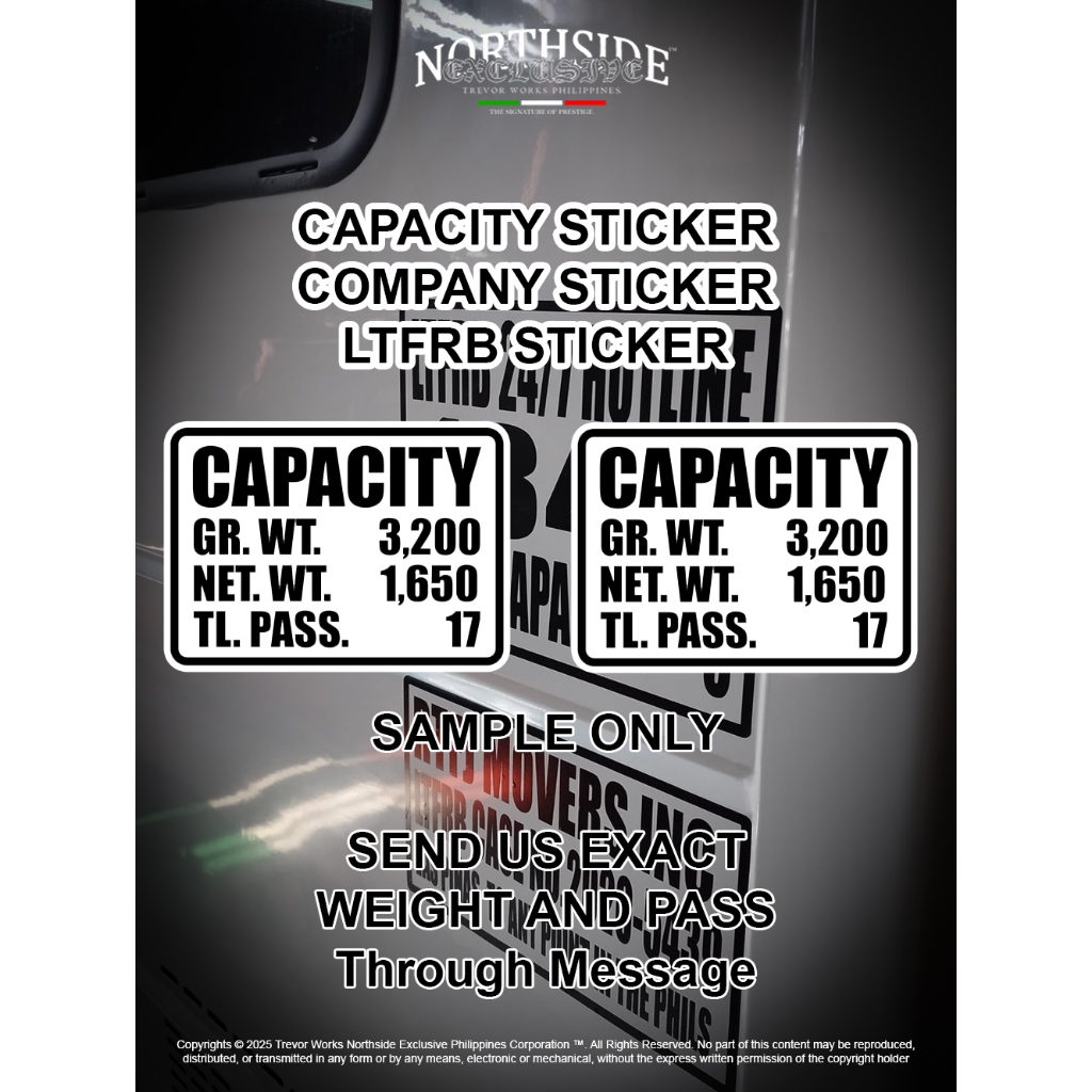 Capacity Sticker , Not For Hire , For Hire, Company Sticker and Address for L300,Tamaraw