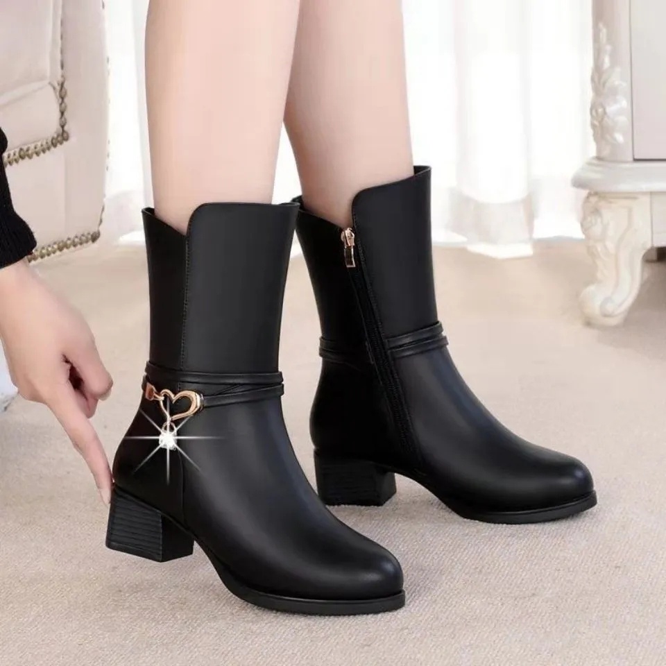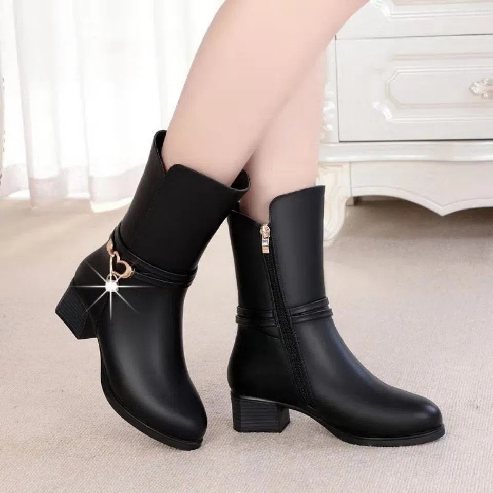 Capomos black leather boots 2022 new Korean real soft leather women's boots mid-low heel retro fashion trend ankle boots black shoes with heels ladies leather heels