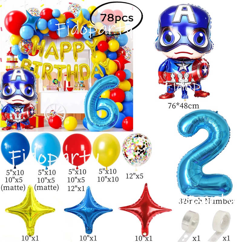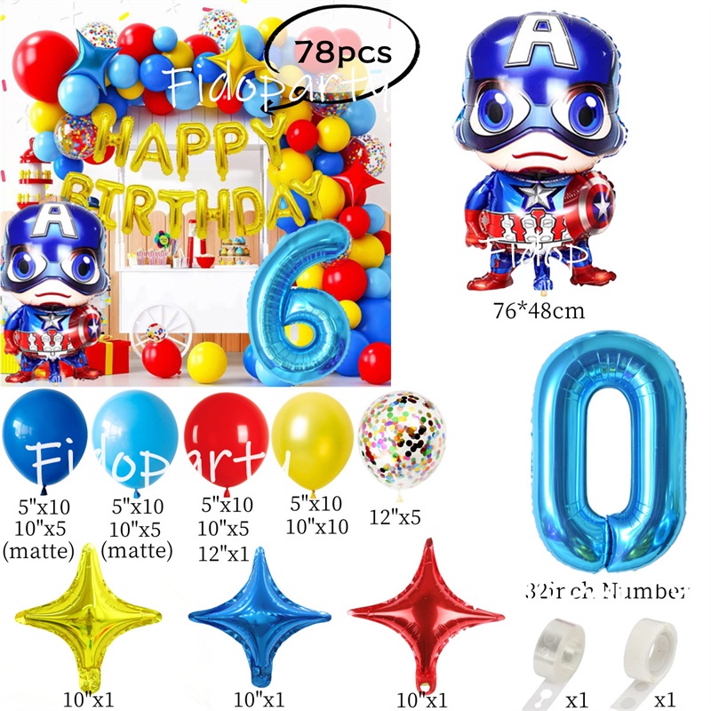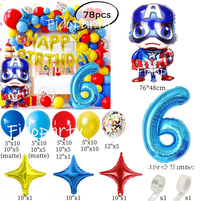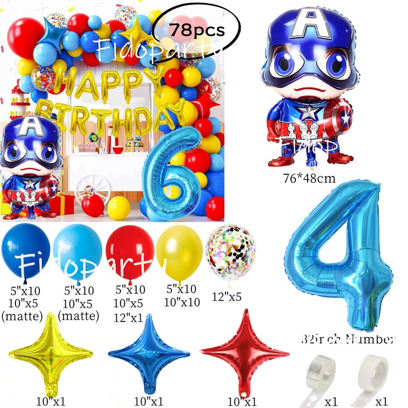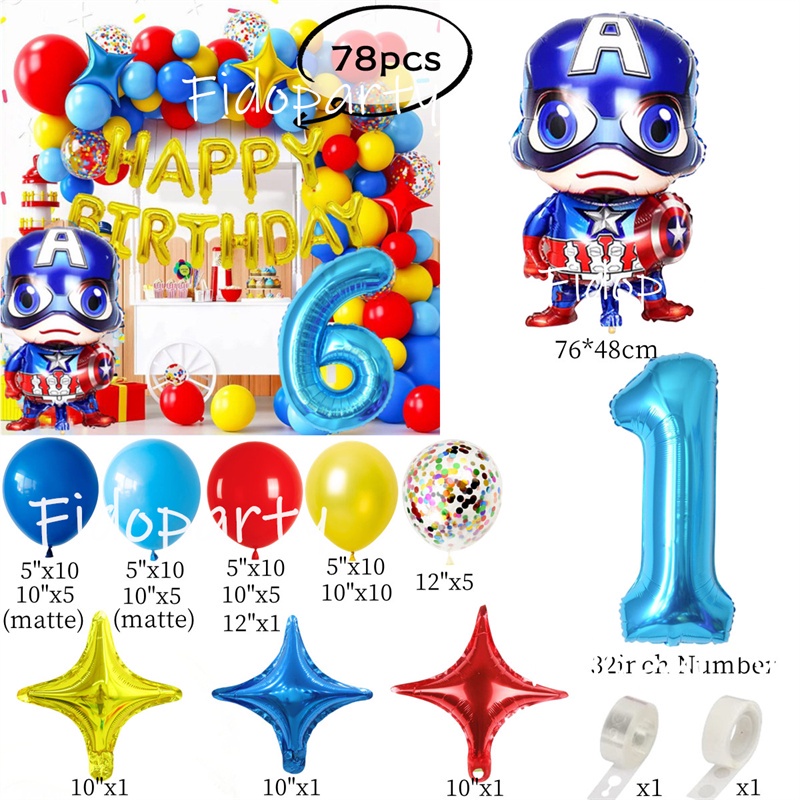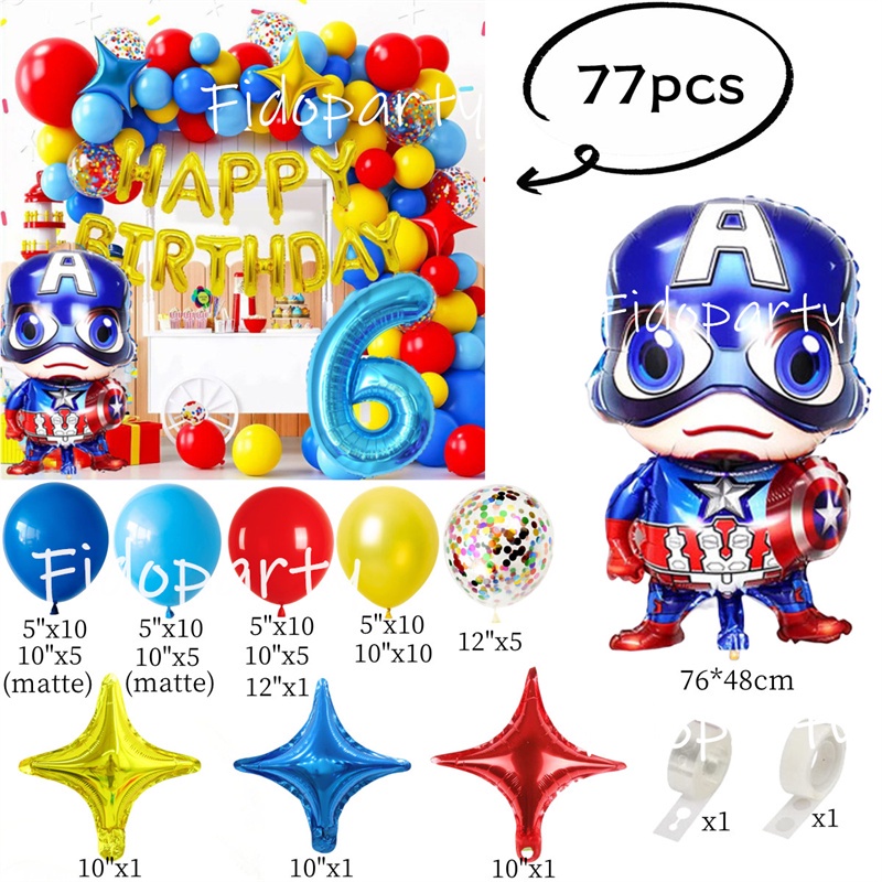 Captain America Balloon Blue Red Yellow Latex Balloon Marvel Superhero Theme Balloon Chain Baby Shower Party Decoration