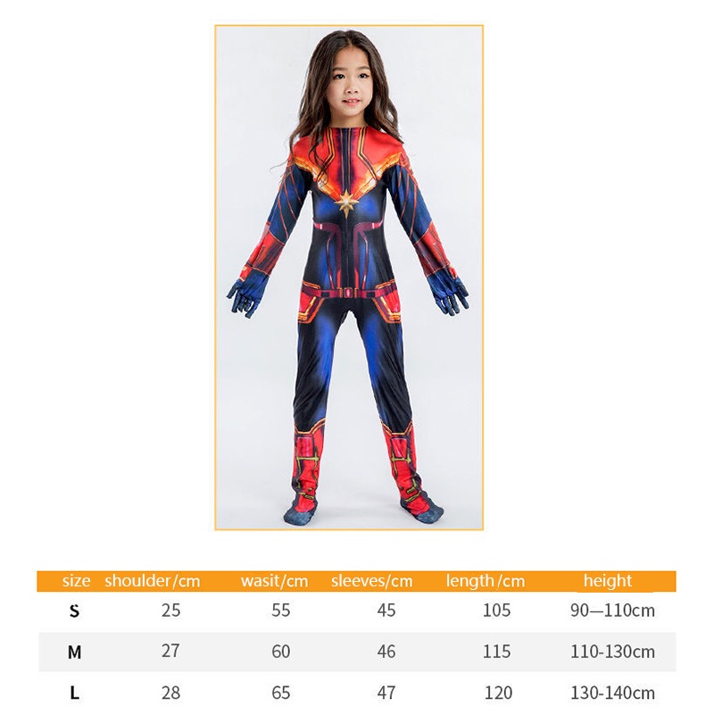 Captain Marvel costume The Avengers Cosplay Suit Bodysuit Jumpsuit Halloween For Kids 602