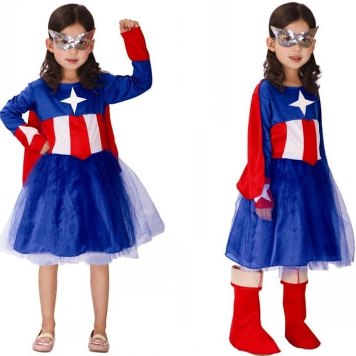 Captain america Girl costume halloween costume for children with superhero characters