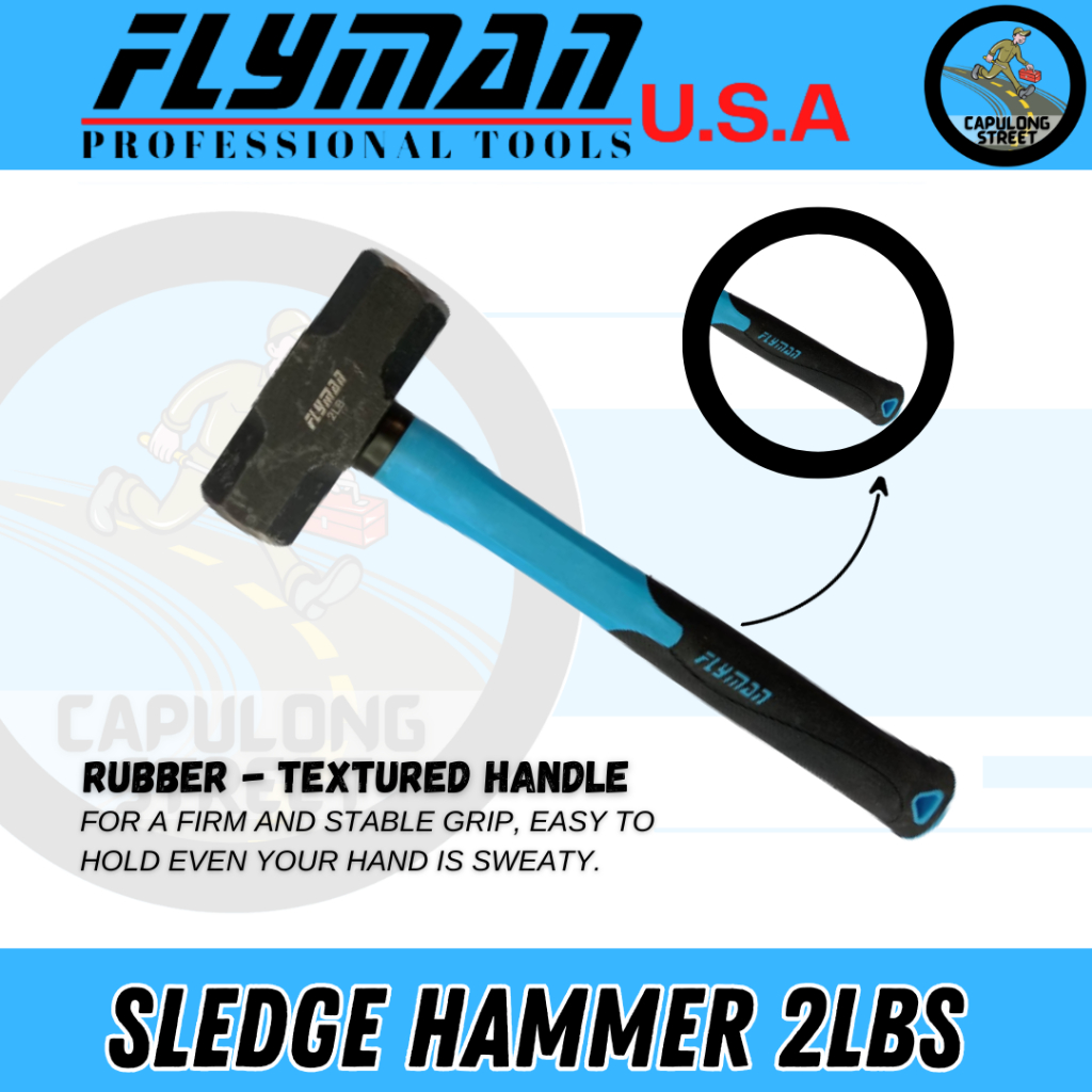 Flyman Sledge Hammer 2lbs Maso 13.5" Carbon Black 3.8cmx10.5cm Heavy Duty Hammer