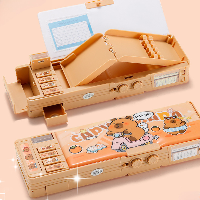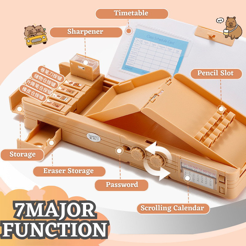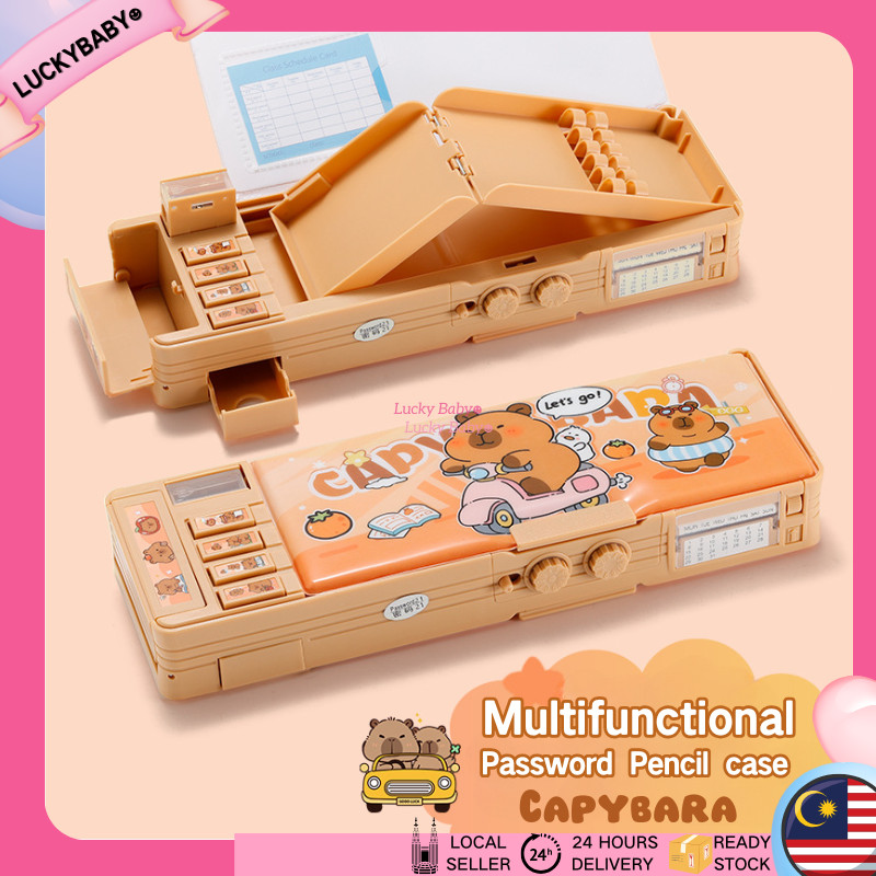 Capybara Pencil Case Multifunction Password Pencil Box Primary School Students Pencil Bag Stationery Box Kotak Pensel