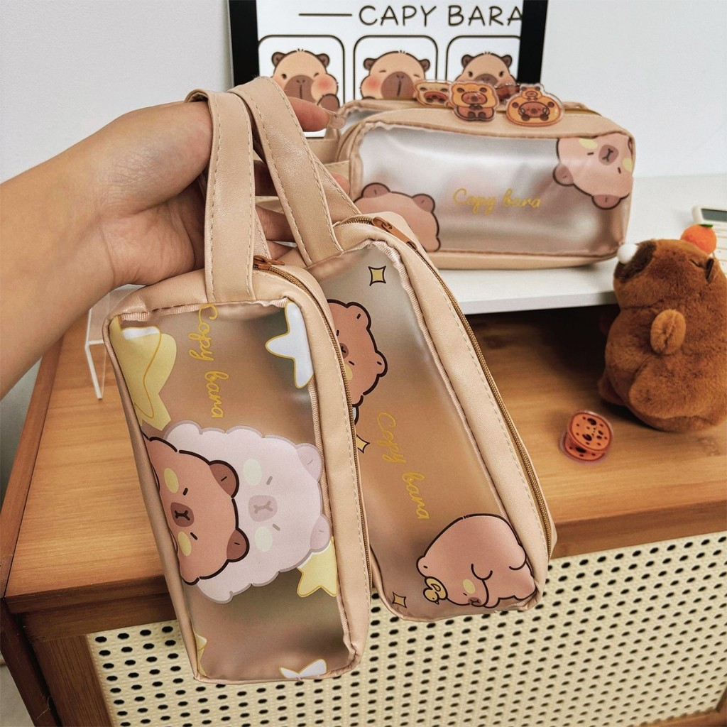 Capybara Pencil Case With Handle Cute Capybara Pattern Stationery Bag School Supplies for Students