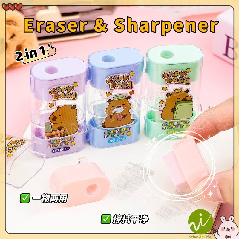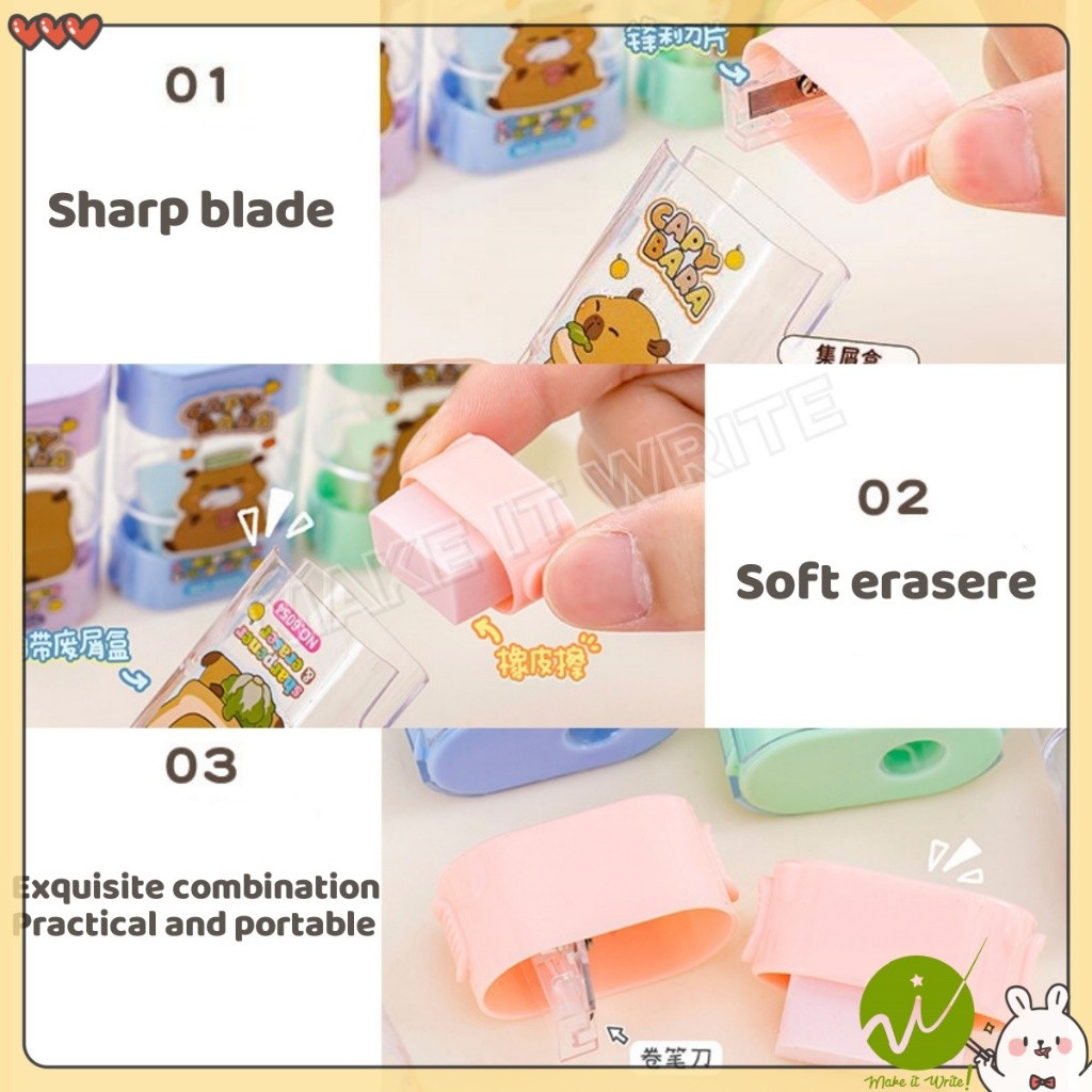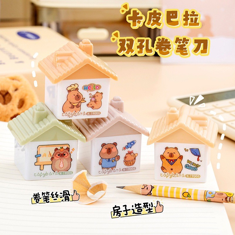 Capybara Pencil Sharpener with Eraser Double hole cute Manual Pencil Cutter student school supplies