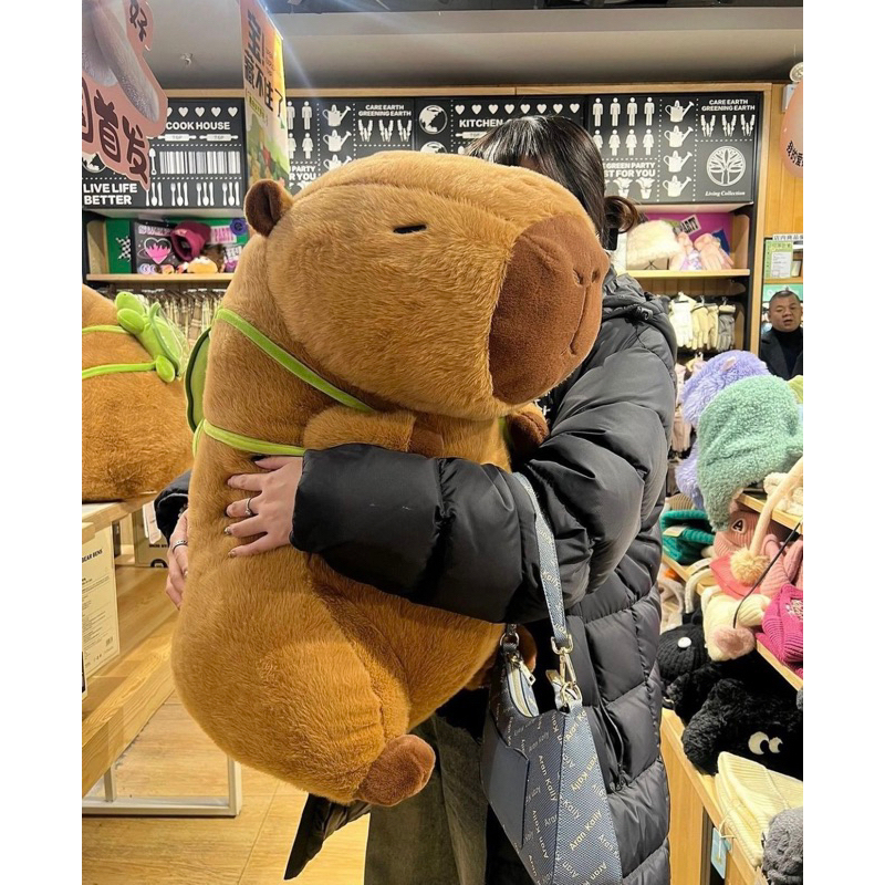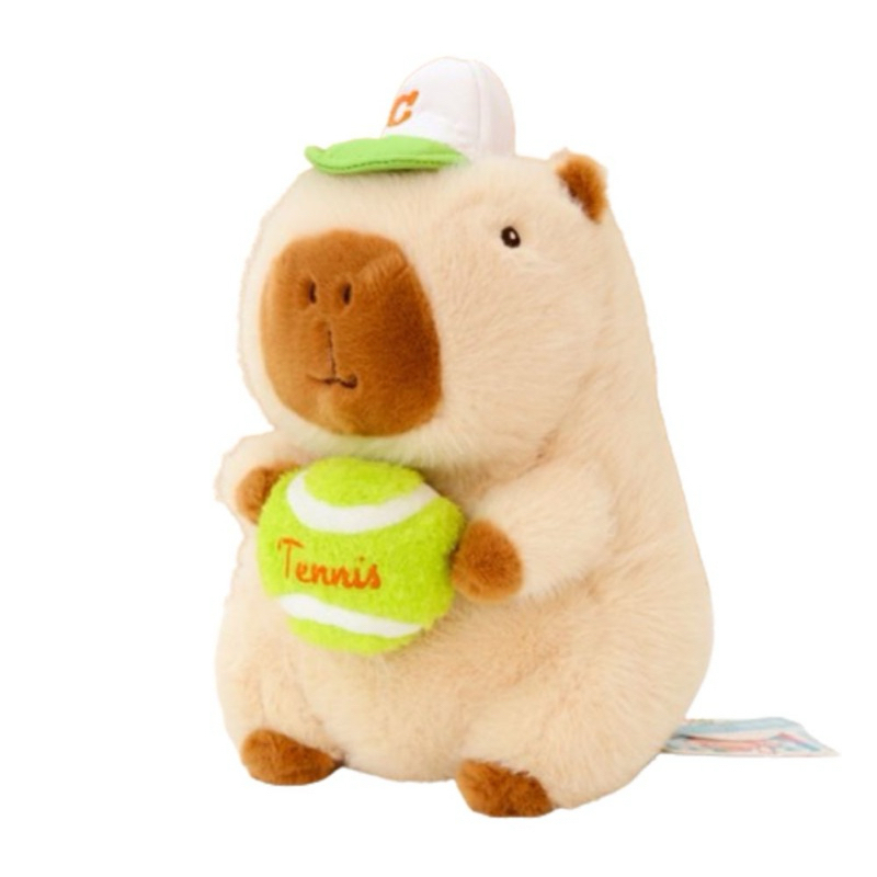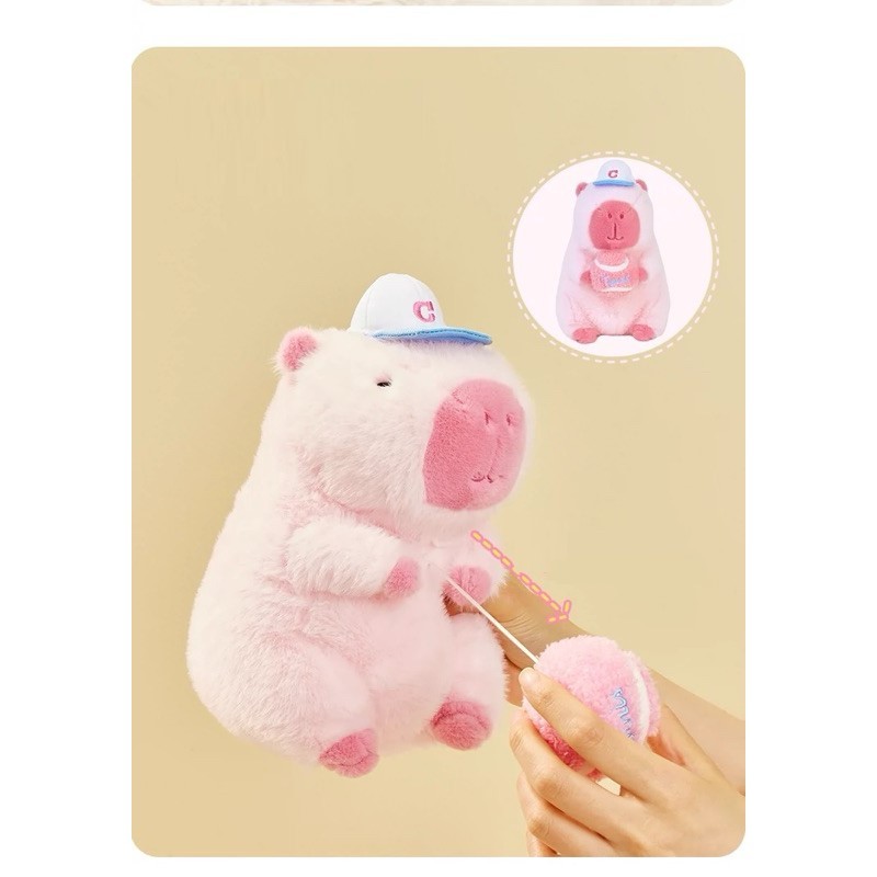 Capybara teddy bear, Capybara teddy bear, pink Capybara hugs and pulls tennis ball, cute capybara pulls the ball