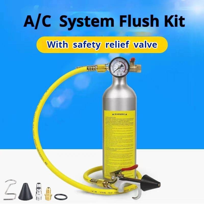 Car A/C AC System Flush Set Automotive Air Conditioning Pipe Cleaning Bottle Vacuum Pump for Aircon