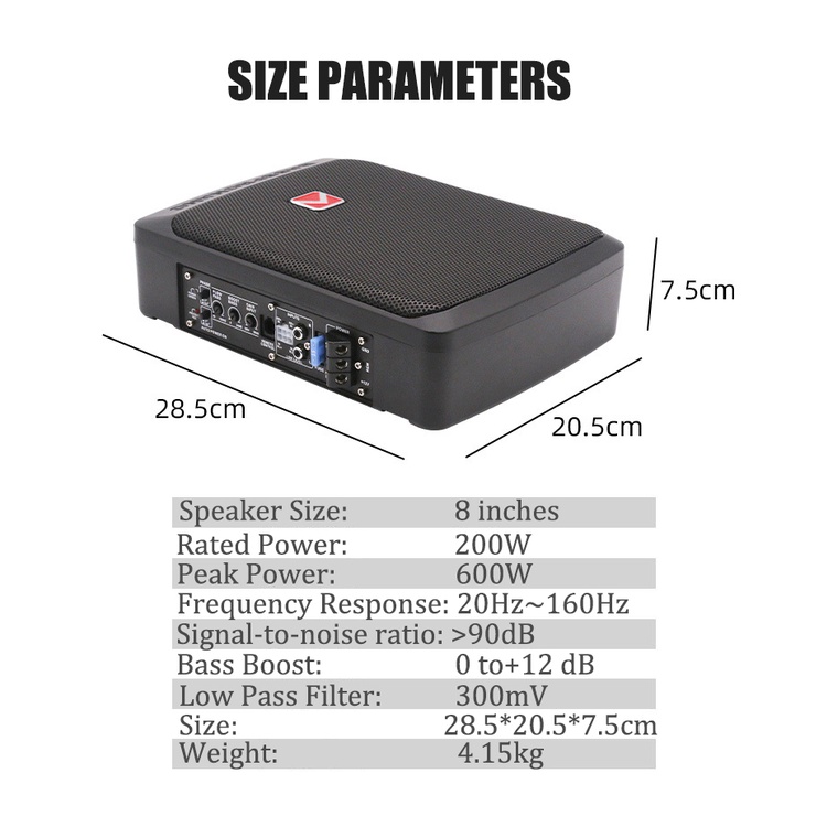 Car Active Subwoofer 12V 8Inches 600W Car Speaker Aluminum alloy Subwoofer