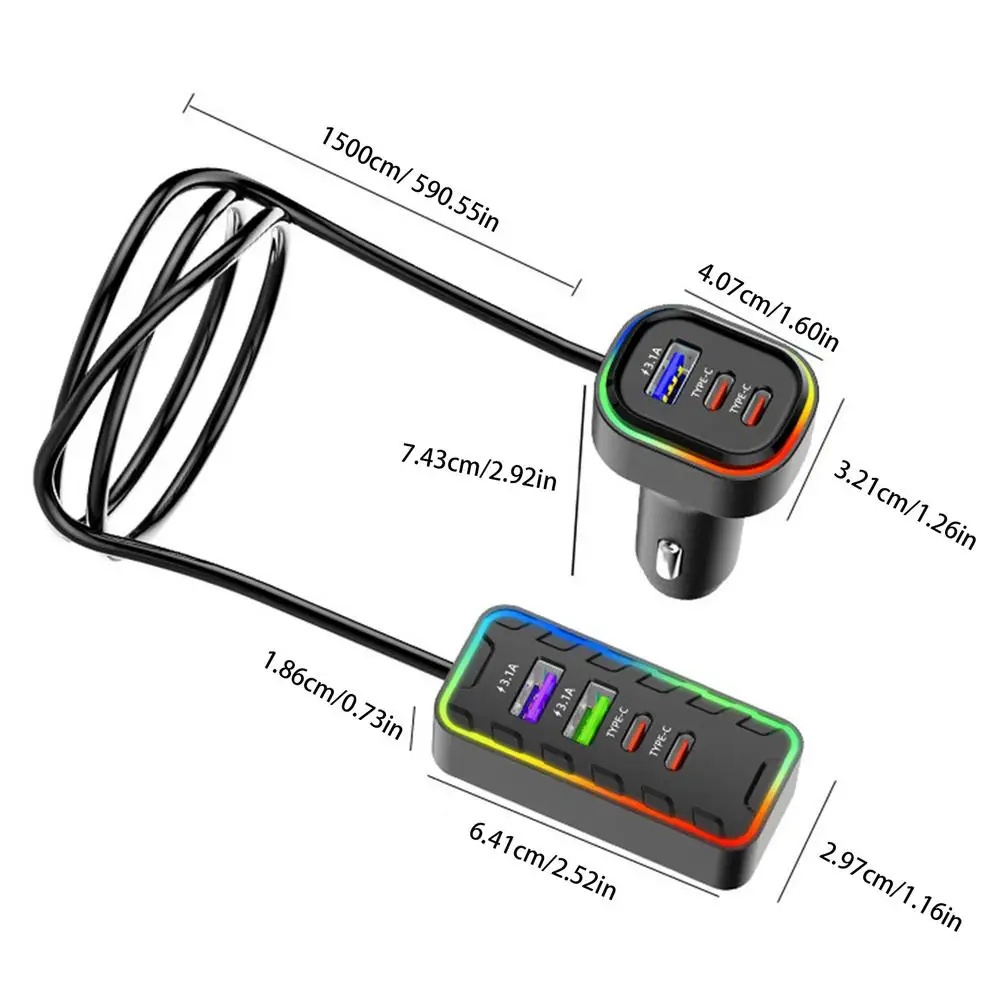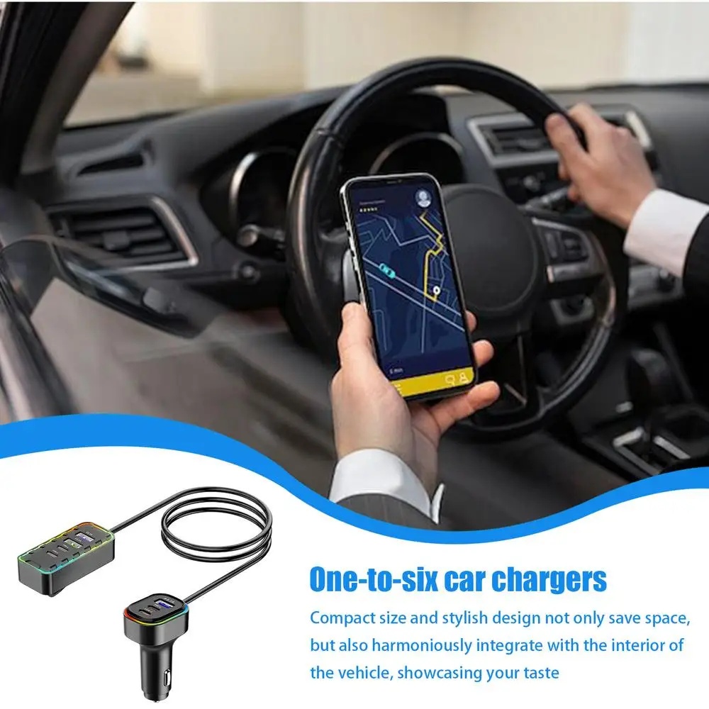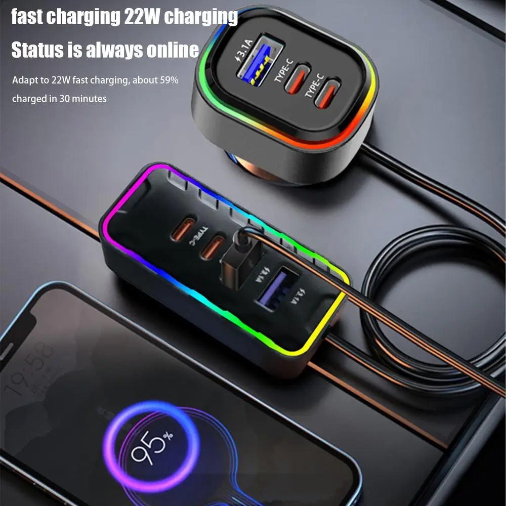Car Adapter with USB Ports Multiple Port Plug And Play Charger Adapter Multipurpose Heatproof Phone Charger Stylish Auto Adapter