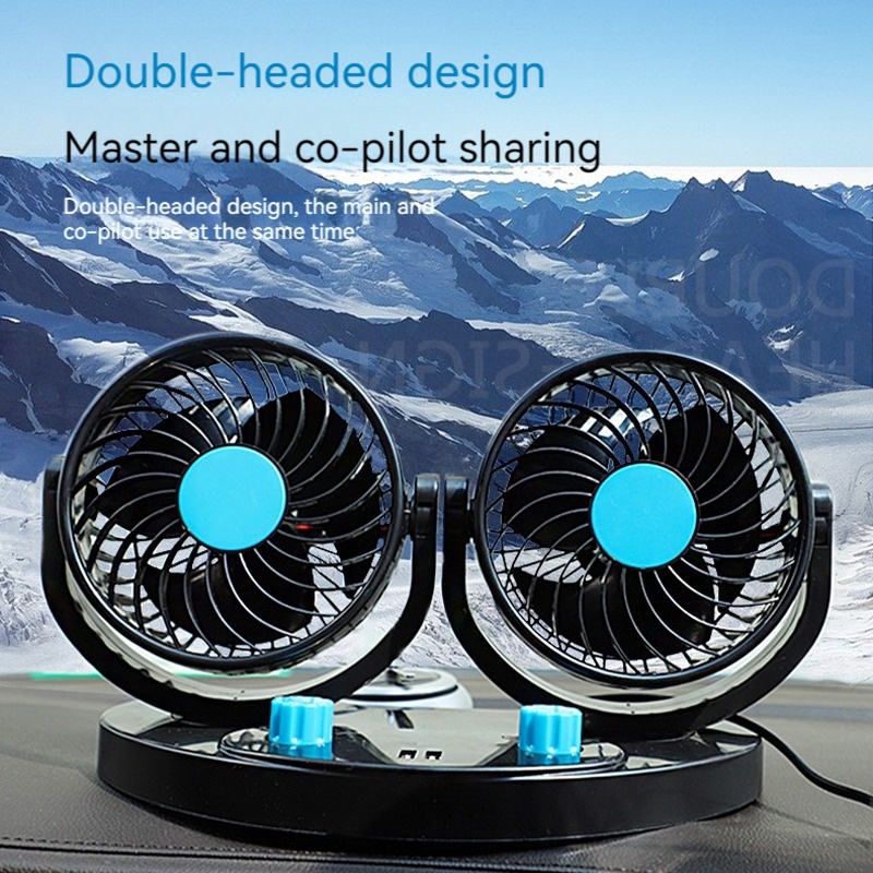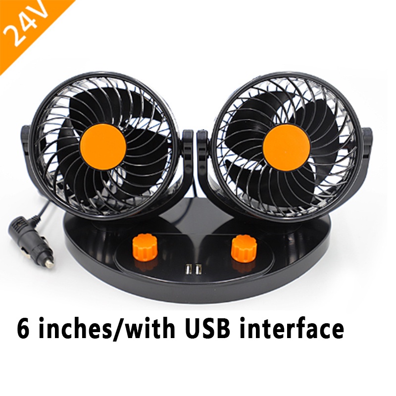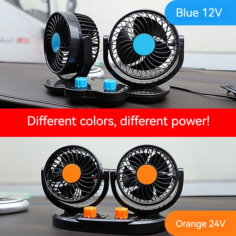 Car Fan 12v/24v Double Headed High-Power Mute Strong Wind Cooling Truck Special Fan