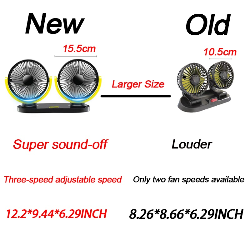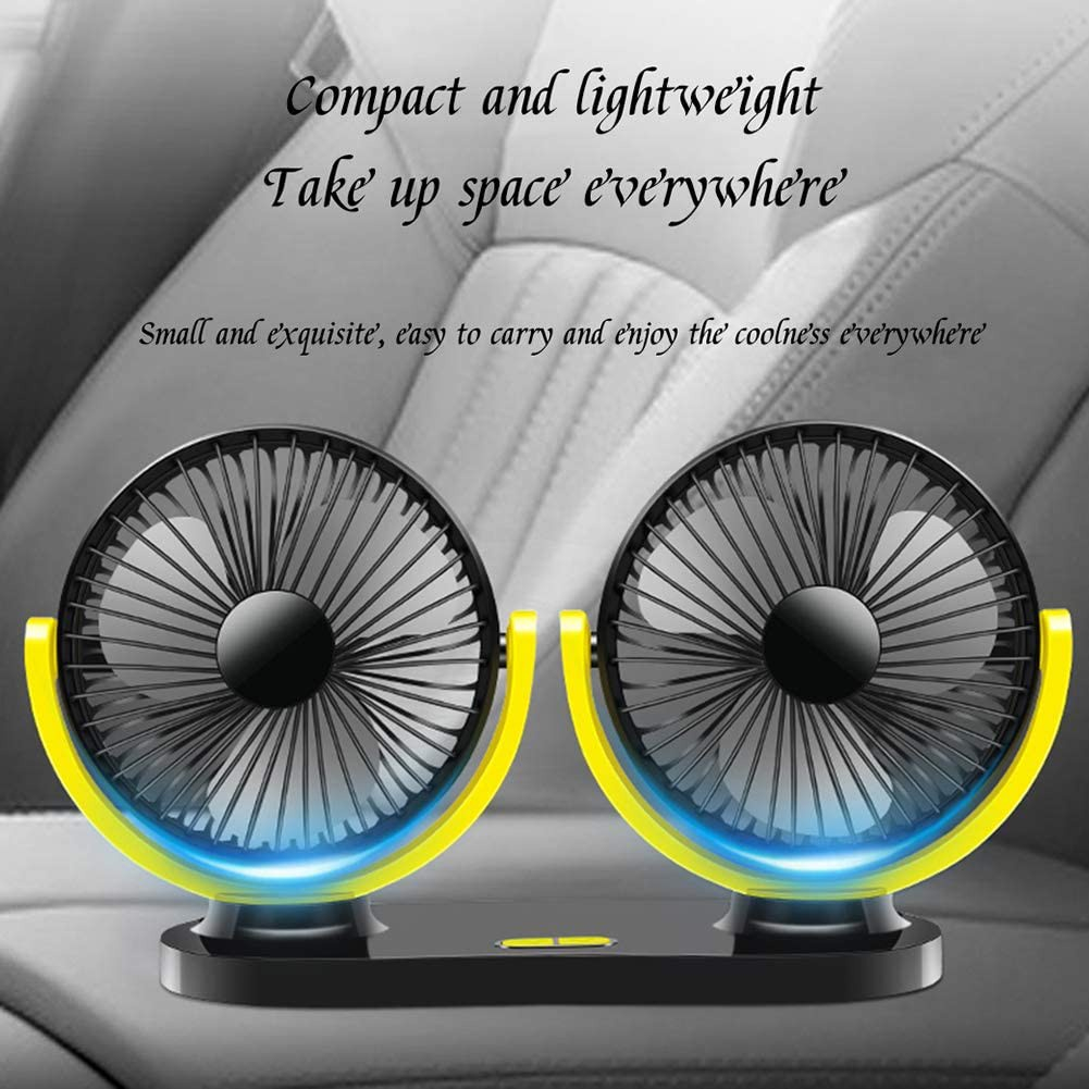 Car Fan Air Conditioning 3 Speed USB Dual Head 360 Degree Rotating Levels Adjustable Silent