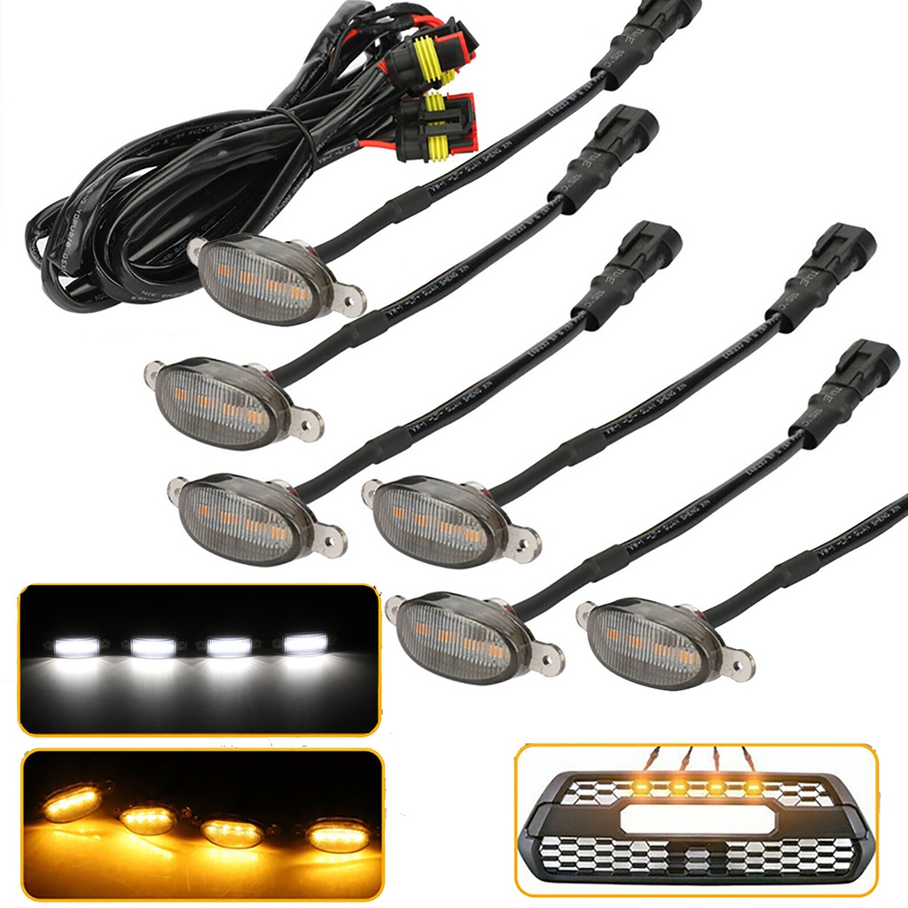 Car Front LED Grille Light Universal Amber White 4LED Grill Light Lighting Eagle Eye Lamp for Off Road Trunk SUV Ford Toyota