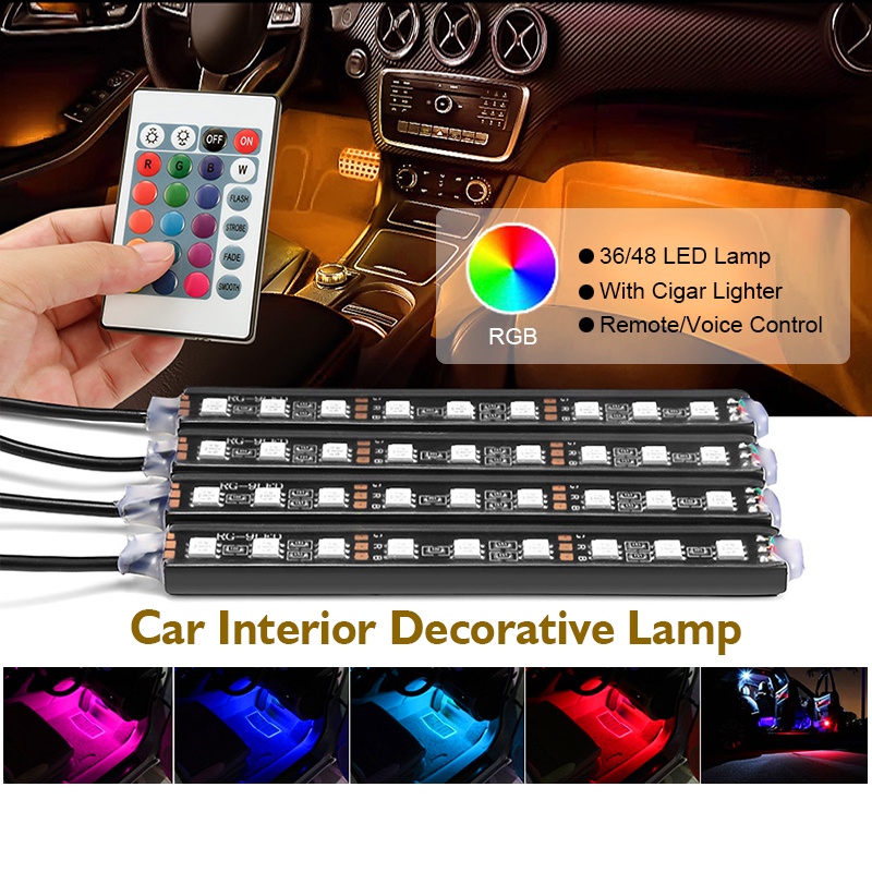 Car Interior Decorative Lights Car Foot Light 36/48 LED Atmosphere Lamp Ambient Lamp Remote Voice