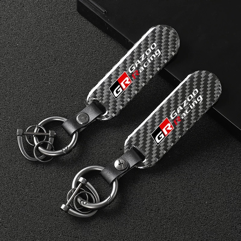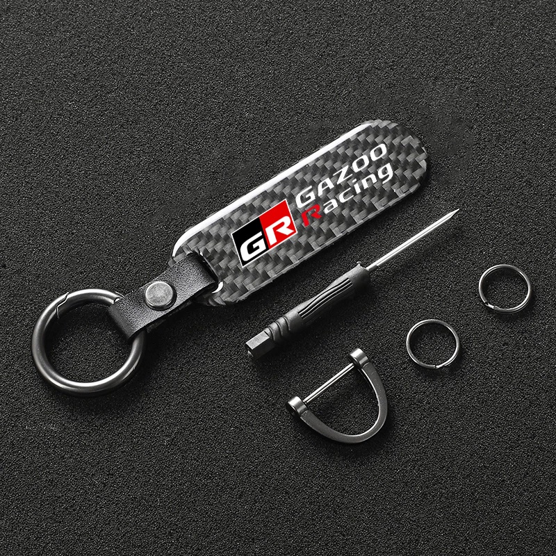 Car Key Chain Key Ring Carbon Fiber Keychain for Toyota GR Sport Gazoo Racing Vios Yaris Corolla Cross Wish Revo CHR Avanza Fortuner Rush Wigo Innova raize Etios Car Accessories