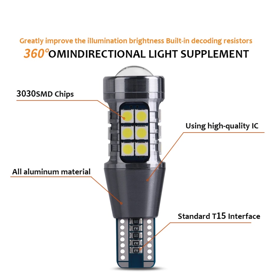 Car LED Light T15 W16W LED Canbus Bulbs Super Bright 3030 27SMD Led Car Wedge Backup Reverse Lights Tail Brake lamps White RED 12V Turn Signal S25 Brake light BA15S
