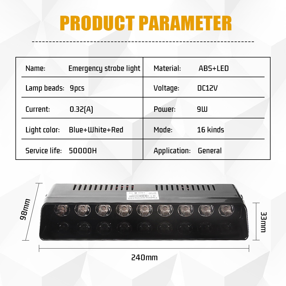 Car Led Emergency Strobe Light LED High Power Flash Warning Light Red & Blue Car Blinker Light 16 Flashing mode SUV truck 12V