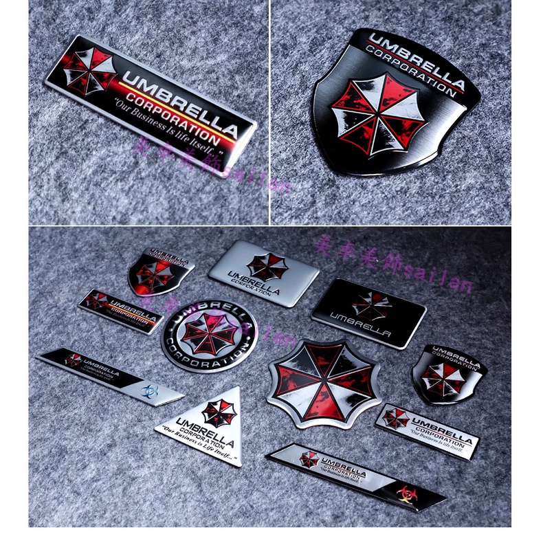 Car Motorcycle Decorative Car Stickers Creative Metal Scratch Car Stickers Fuel Tank Cover Block Biohazard Protective Umbrella Aluminum Alloy Tail Label Fender Fuel Tank Cover Stickers