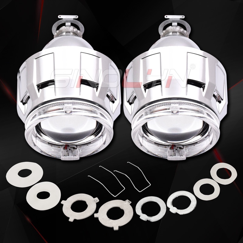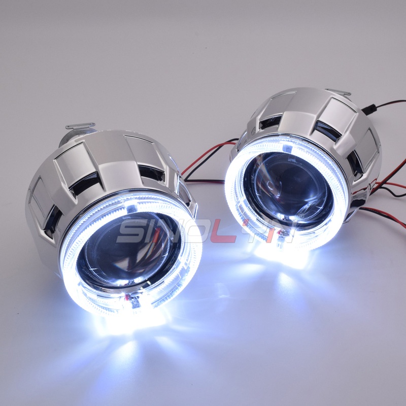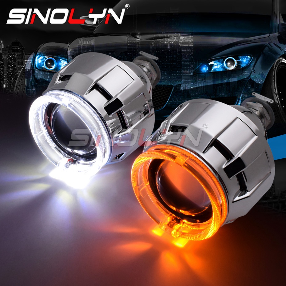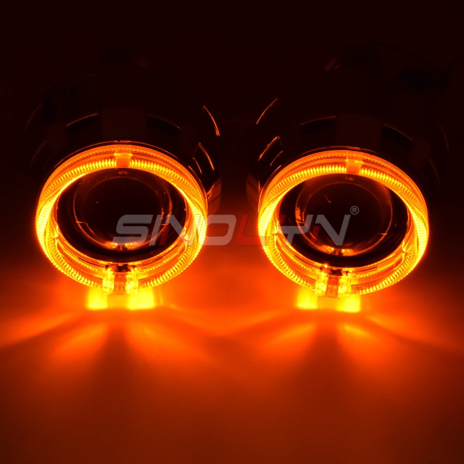 Car Motorcycle Headlight Dual Colors LED Angel Eyes Halo Rings HID Bi-xenon Projector Lens Retrofit Turn Signal Lamps