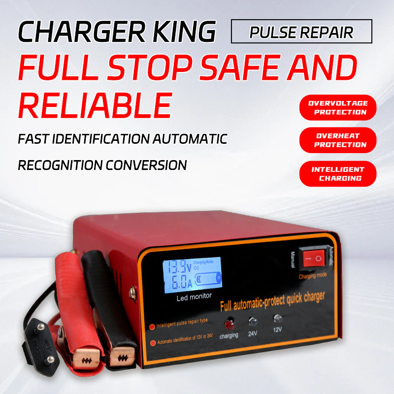 Car Motorcycle Heavy Duty Battery Charger 12v 24v Fully Automatic Manual Mode Lead Acid Pulse Repair