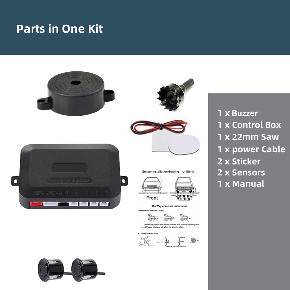 Car Parking Sensor Kit Buzzer 2 Sensors 22mm Reverse Radar Sound Alert Indicator Vehicle Alarm Systems Probe System
