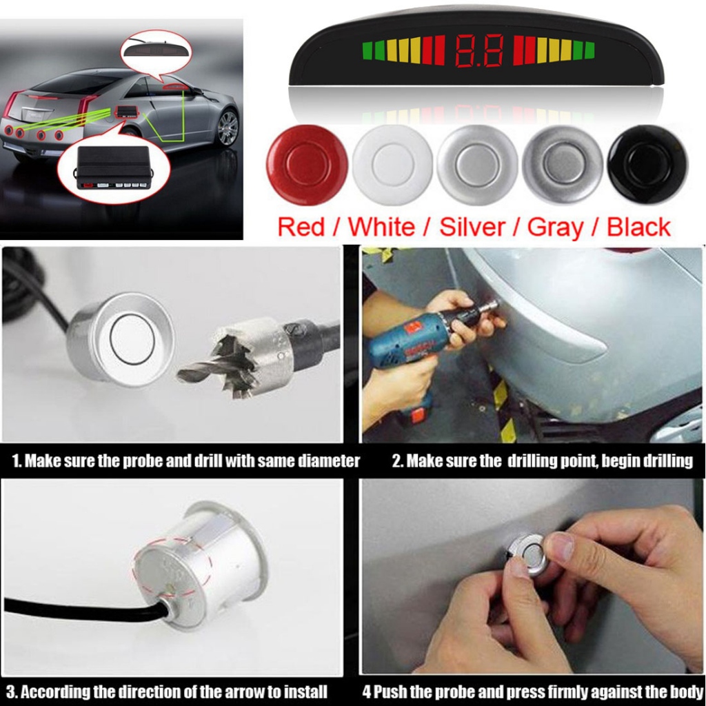 Car Parking Sensor LED Display Ultrasonic Reverse Backup Sensors Detector with 4 Parking Sensor and Backlight Display