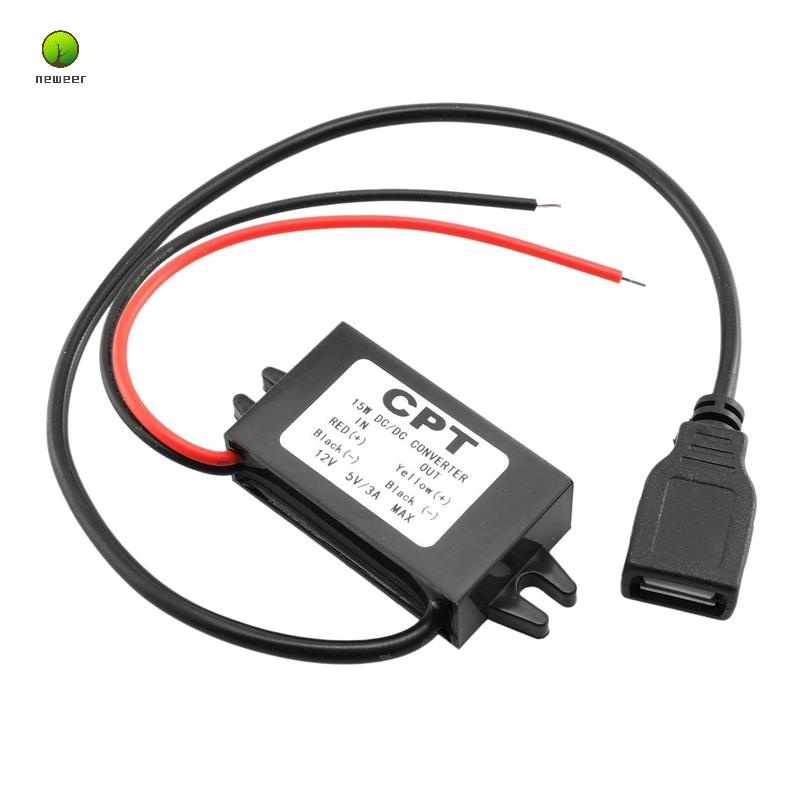 Car Power Converter DC 12V to 5V 3A Voltage Converter with Single USB Adapter Connectors for Phone Charging Car Audio