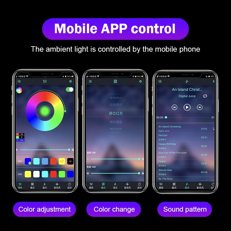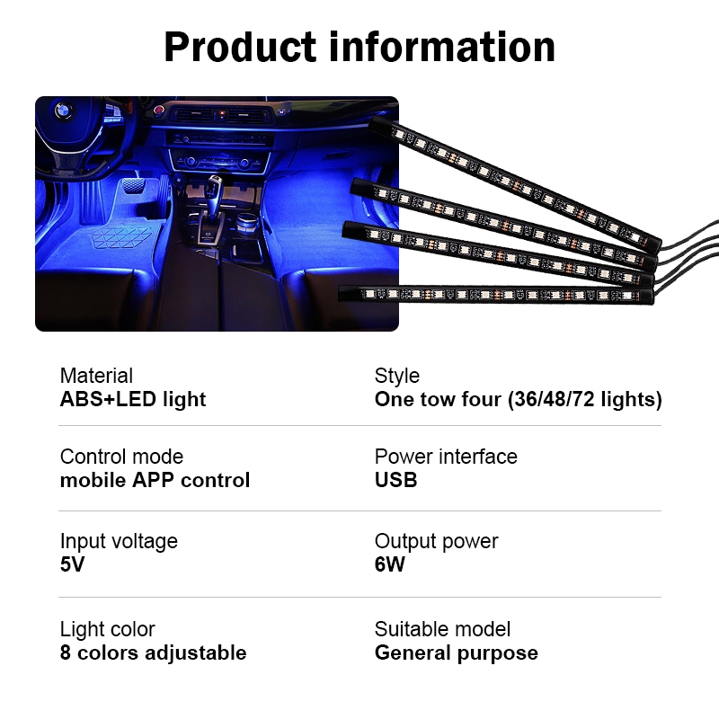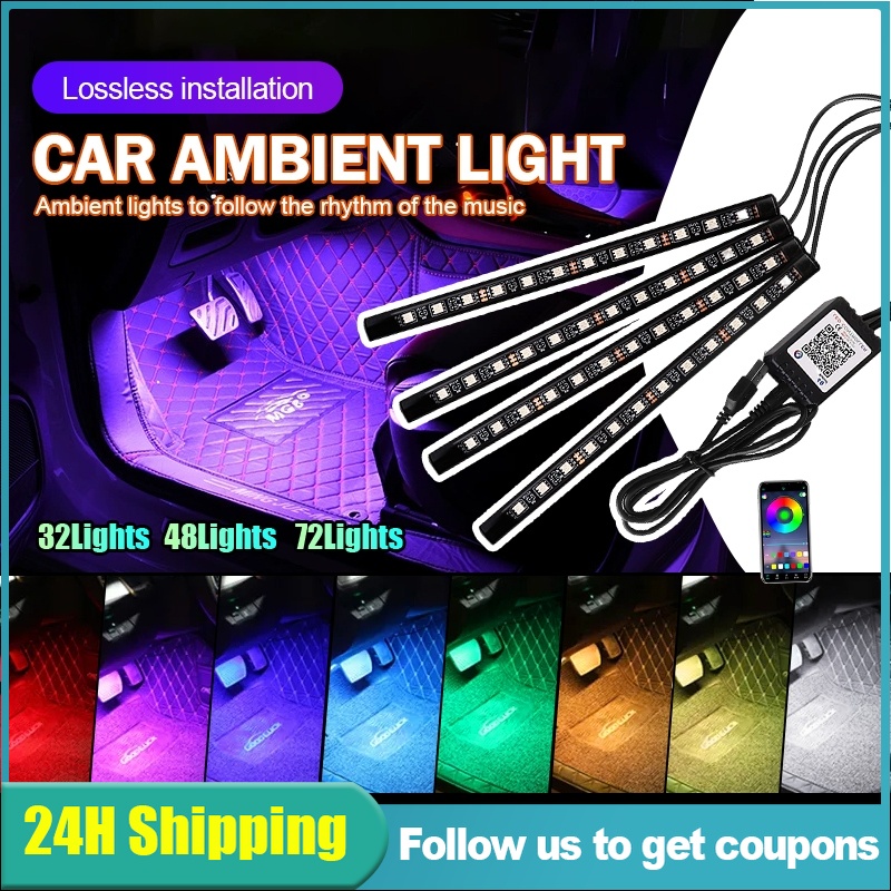 Car RGB Atmosphere Light Strips Remote Control Sound Sensor APP Control Interior Styling