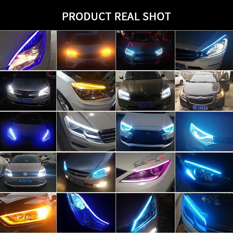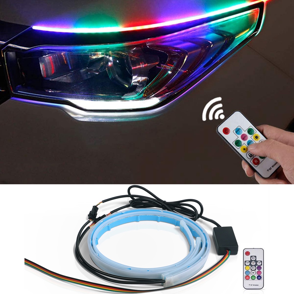 Car RGB LED Strip Lights Daytime Running Lamp Sequential Yellow Turn Signal Headlight Angel Eye Neon DRL Strip Flexible Tube 12v