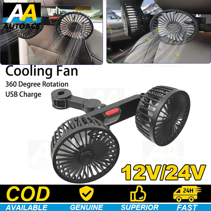 Car Rear Fan 360 Degrees USB Double-headed Fans 3 Speeds Wind Cars Back Row Seat Fan