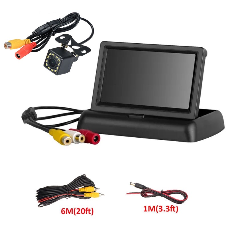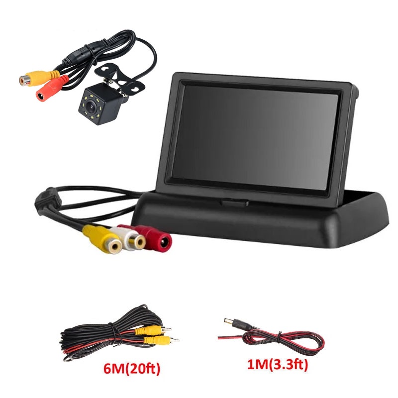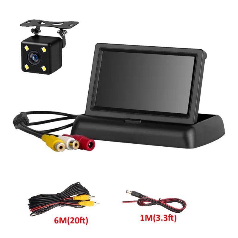 Car Rear View Camera with Monitor Folding 4.3" TFT LCD HD Screen Reverse LED Backup Reversing Camera for Vehicle Parking