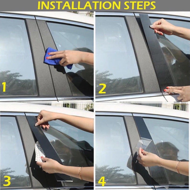 Car Side Door Window Pillar Trim Panel Glossy Black Protector Sticker Decal For Toyota Vios / Altis