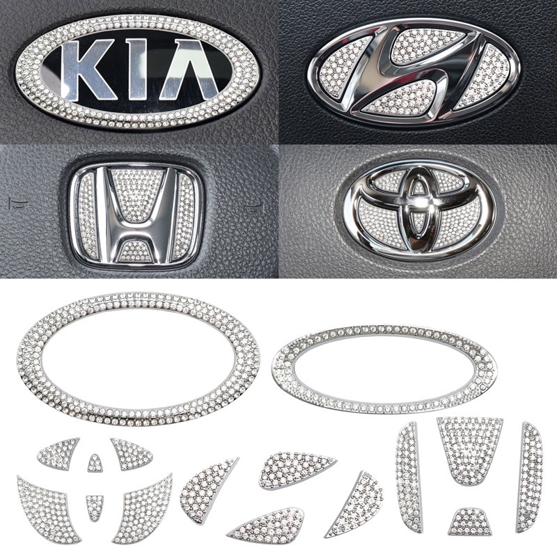 Car Steering Wheel Crystal Emblem Logo Diamond Sticker Decal Cover Rhinestone For Toyota Honda Hyundai Kia Ford Interior Accessories