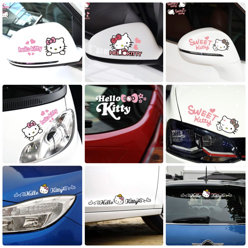 Car Stickers Hello Kitty Cartoon Cute Lovely Baby Pink Girl Decals For Rearview Mirrors Windshield Window Door Trunk Bumper Headlights Hood Motorcycle