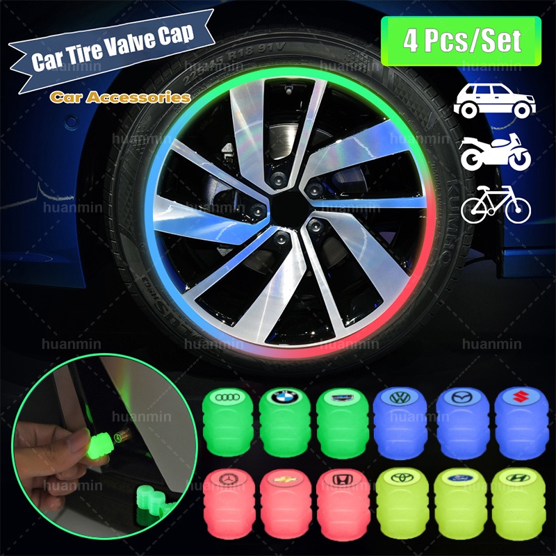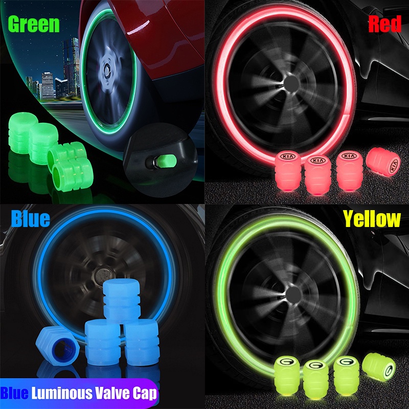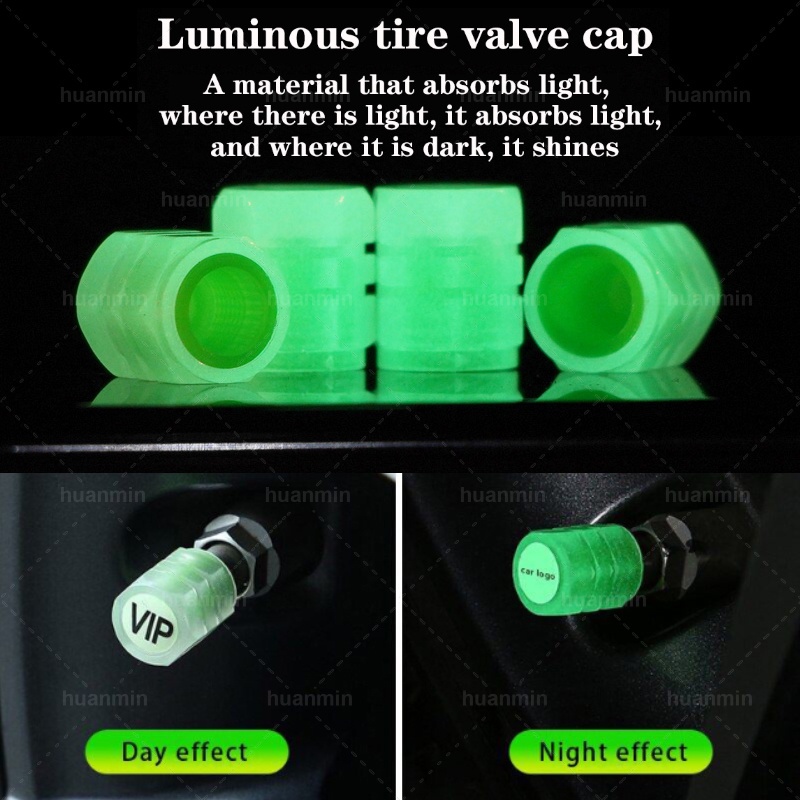 Car Tire Luminous Valve Cap/Car Tire Air Valve Caps/Mini Tire Valve Stem Caps Glow in The Dark for Cars, Suvs, Trucks, Bicycle, Motocycles / Universal Automotive Accessories