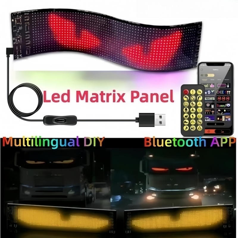 Car Truck Devil's Eye With App Control LED Matrix Pixel Panel USB Multilingual Flexible Scrolling Advertising LED Sign RGB Pattern Display Light