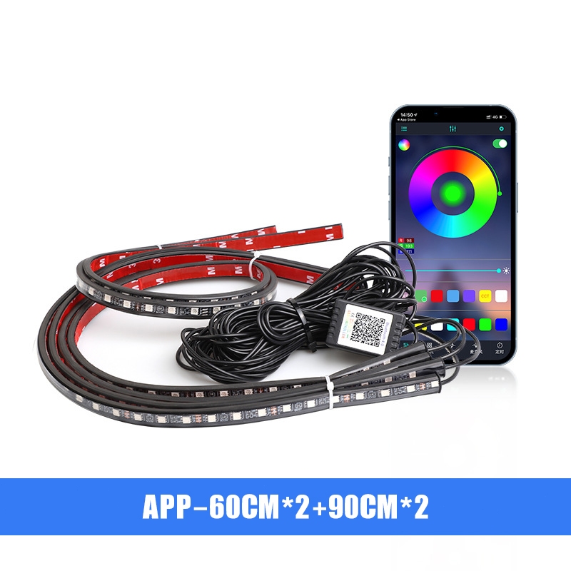 Car Underglow Neon Lights Multi-Color RGB LED Underbody Strip Light Kit with APP & RF Control
