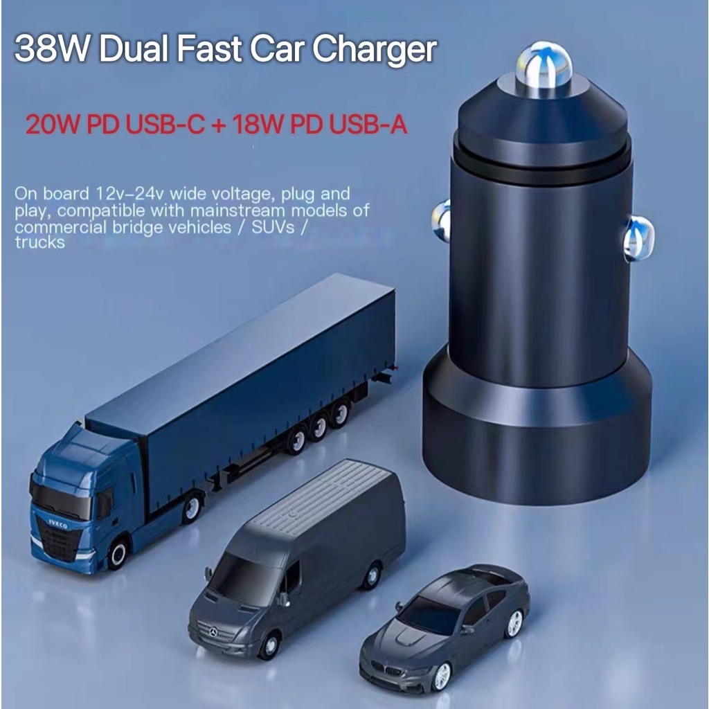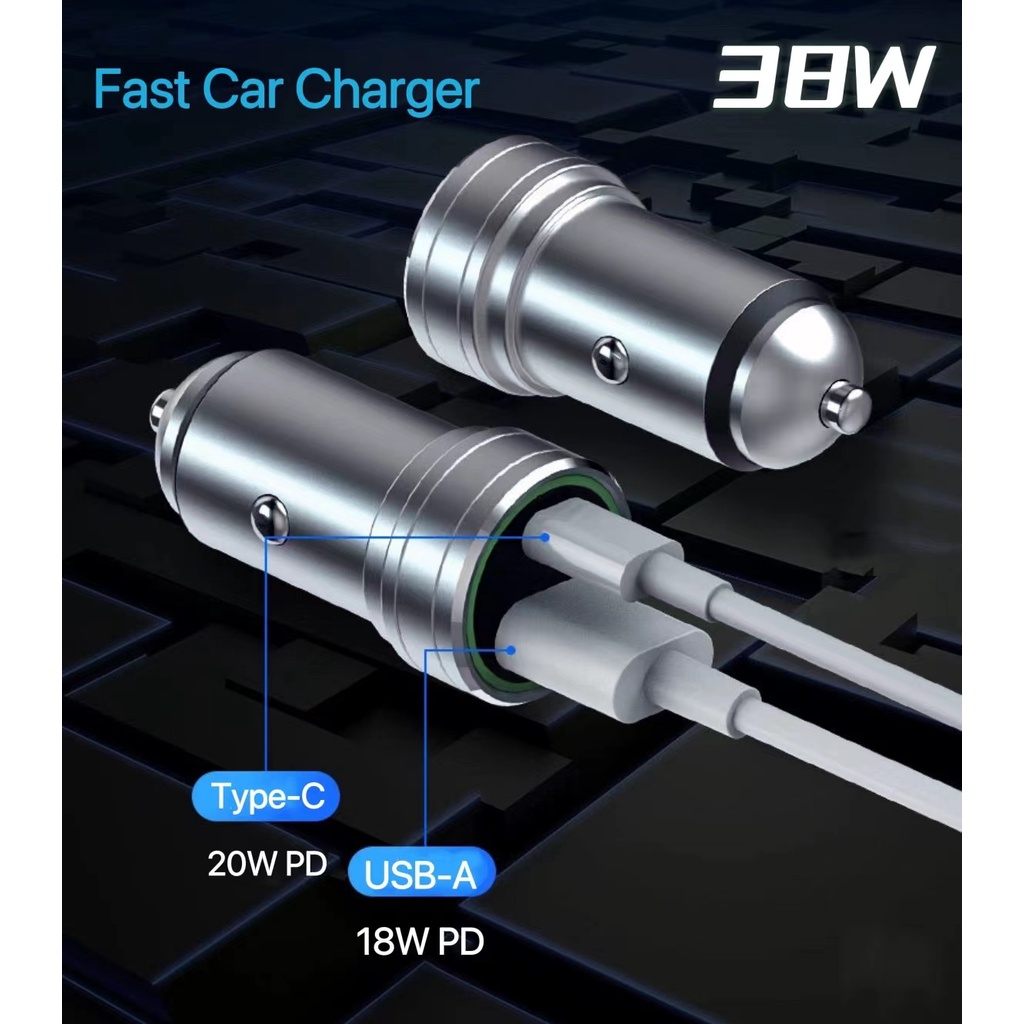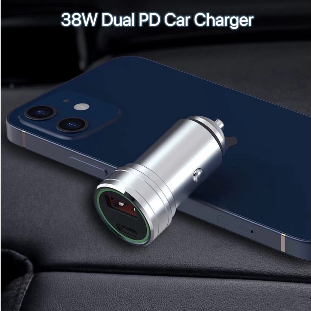 Car charger 38W PD Quick fast charger USB USB-A USB-C Type C universal charger