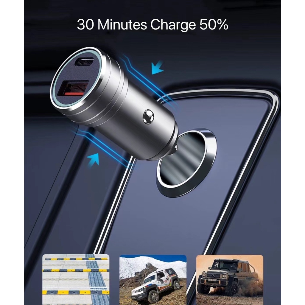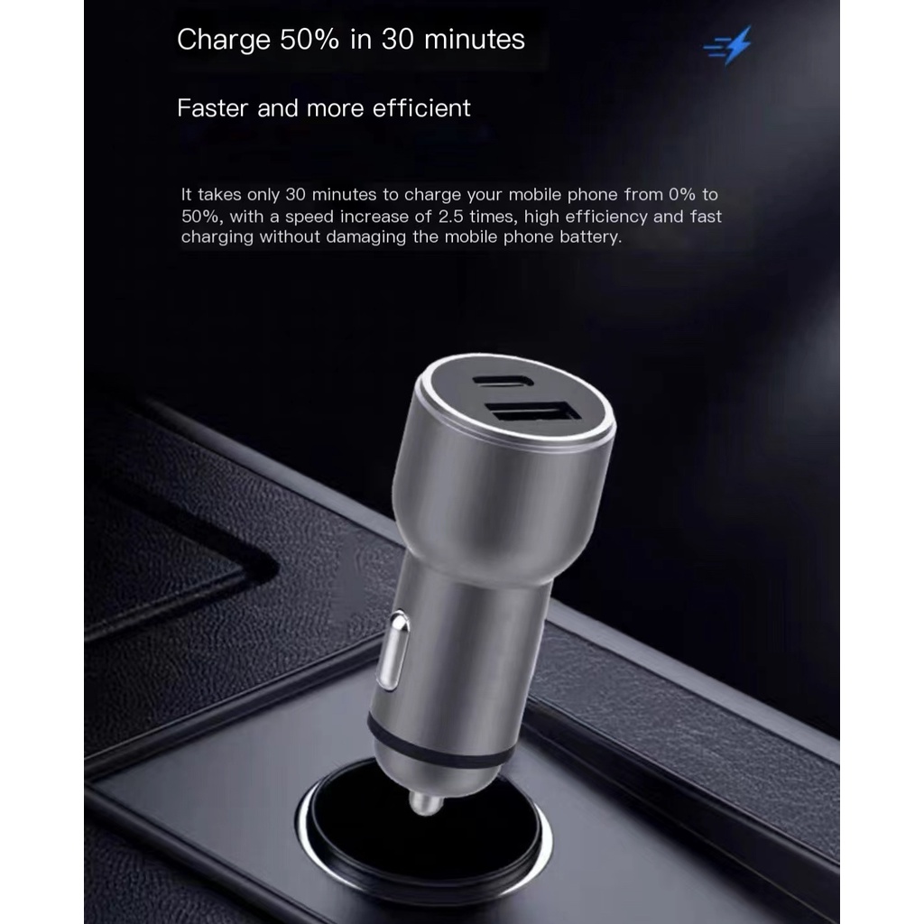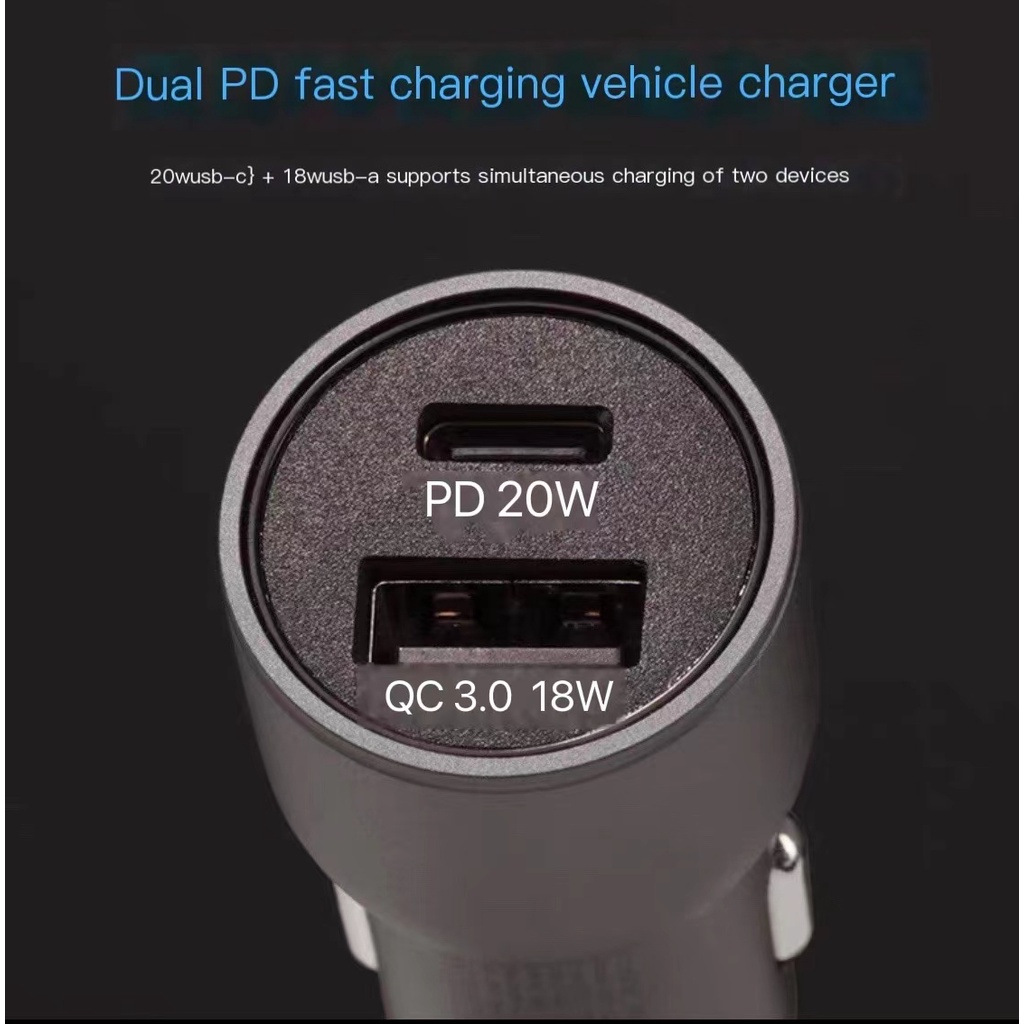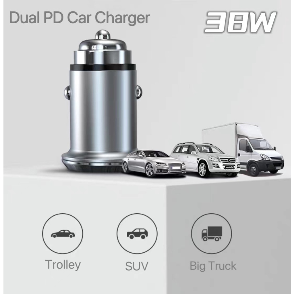 Car charger 38W PD Quick fast charger USB USB-A USB-C Type C universal charger