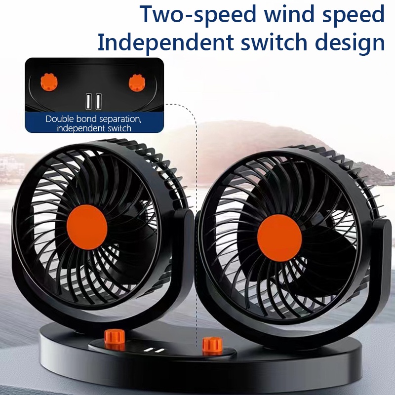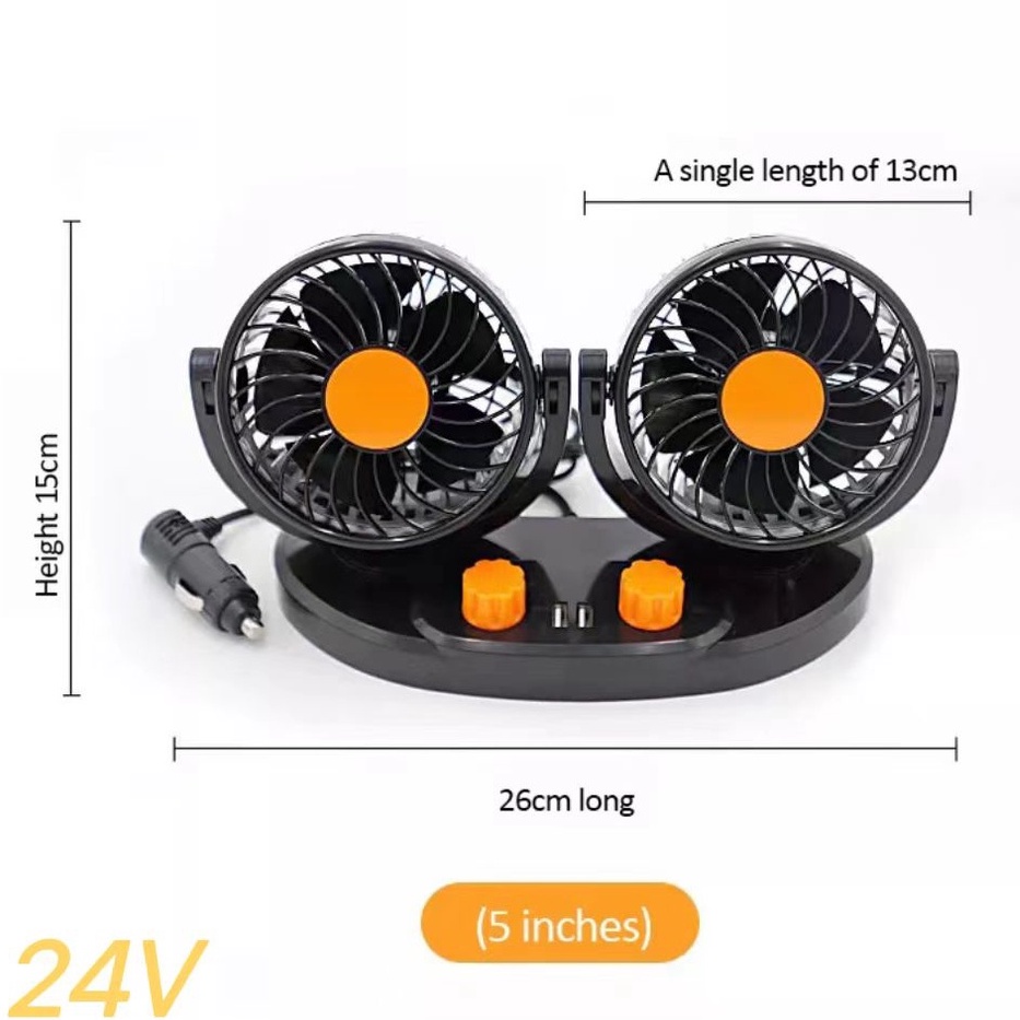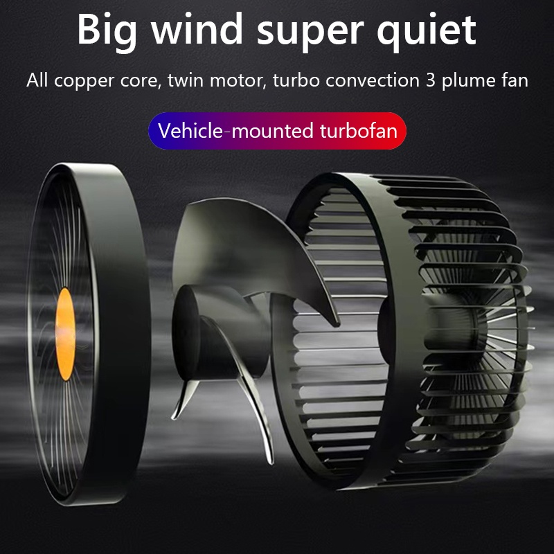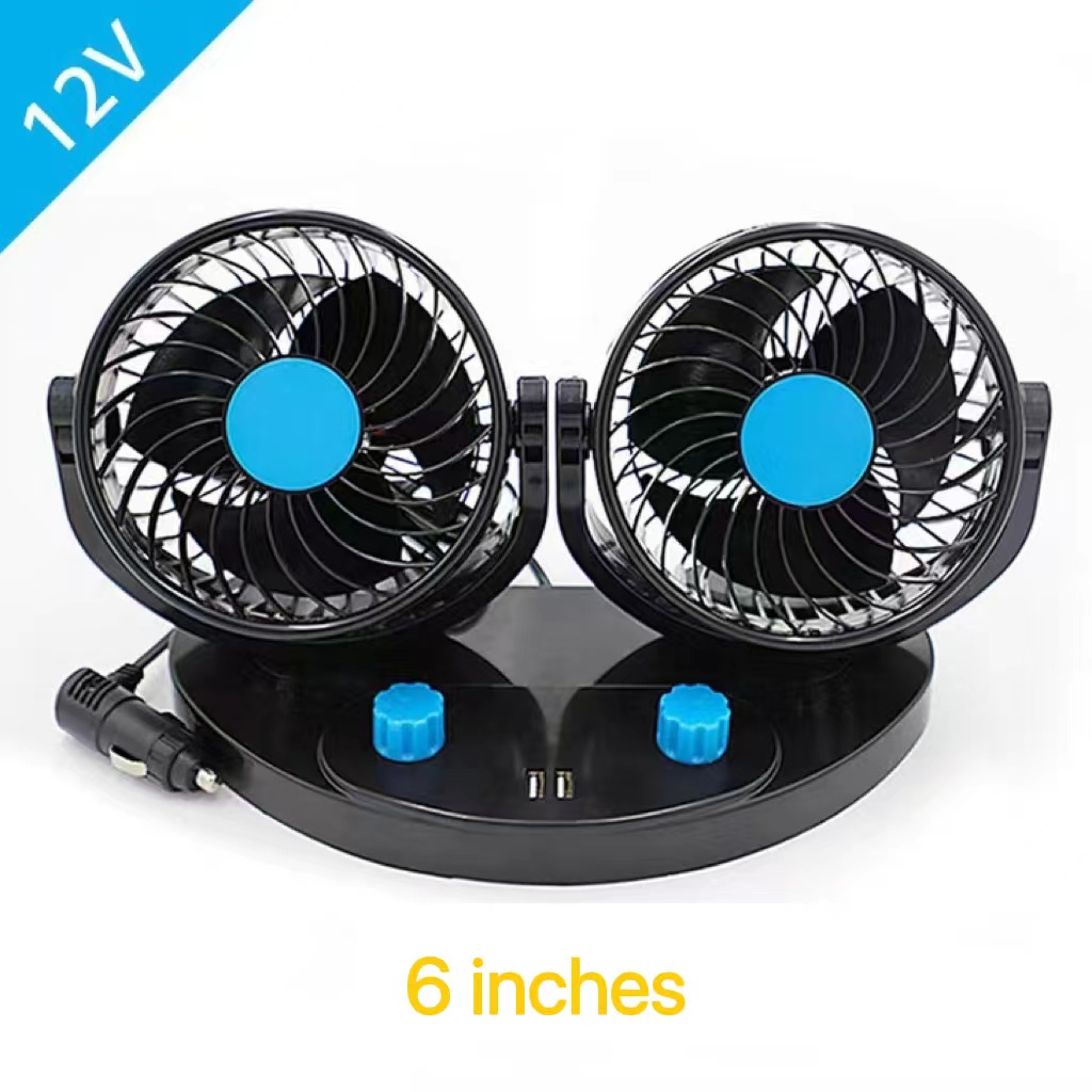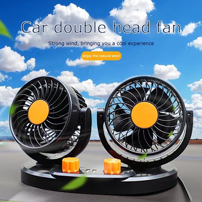 Car fan 12v/24v double-headed high-power mute strong wind cooling cooling truck special fan