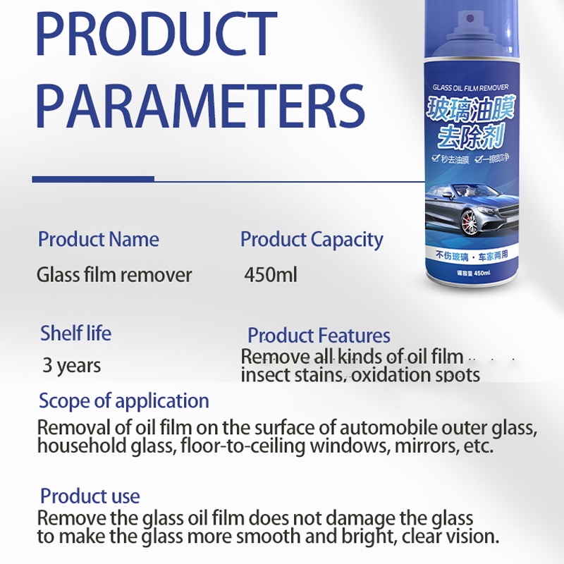 Car glass oil film remover 450ml Car glass cleaner for acid rain remover water marks for car glass
