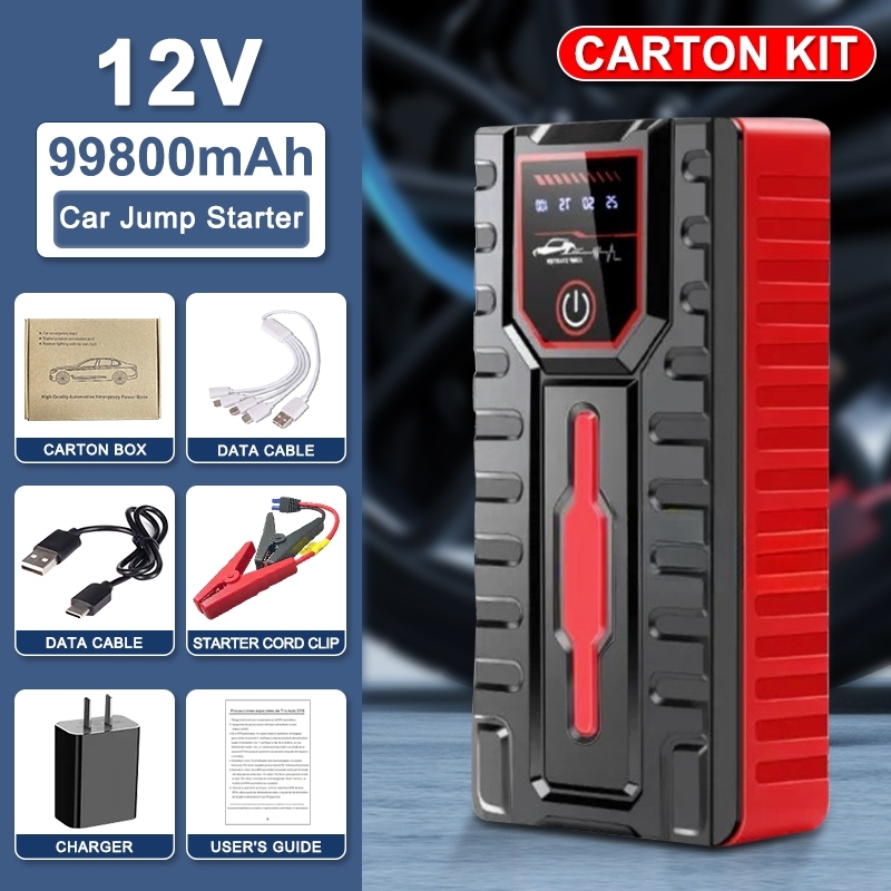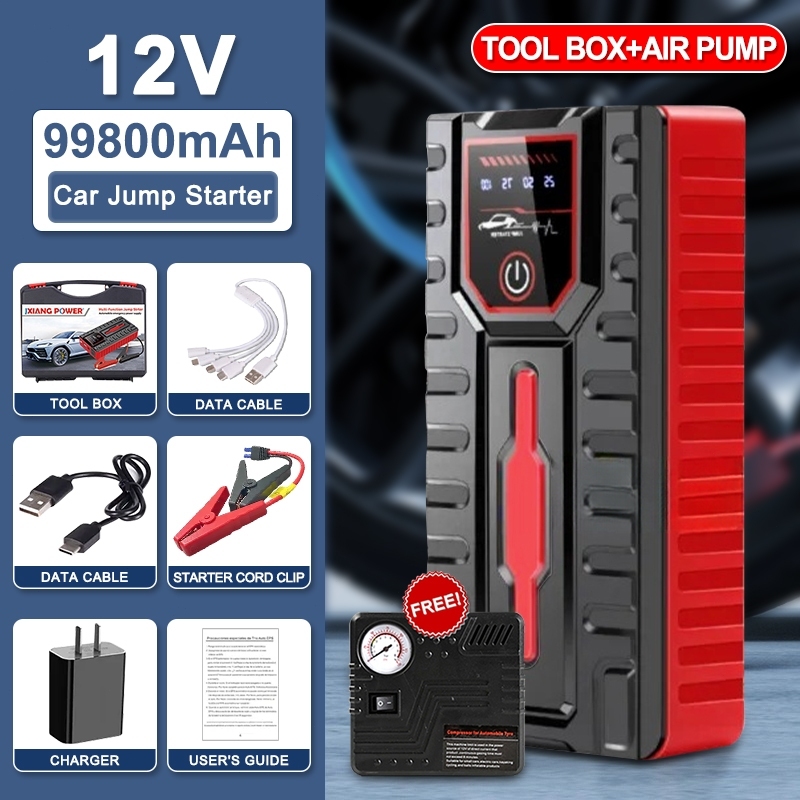 Car jump starter 99800mAh portable car starter kit car emergency starting power supply with air pump