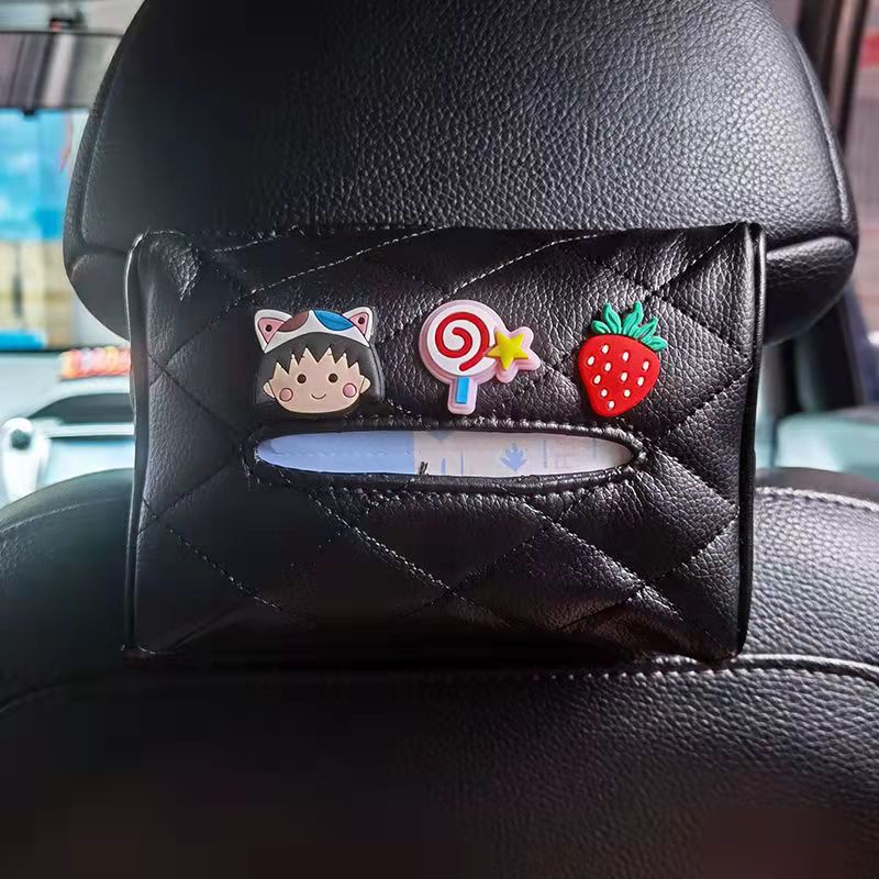 Car tissue box storage leather can be fixed removable cartoon cute car paper box car accessories