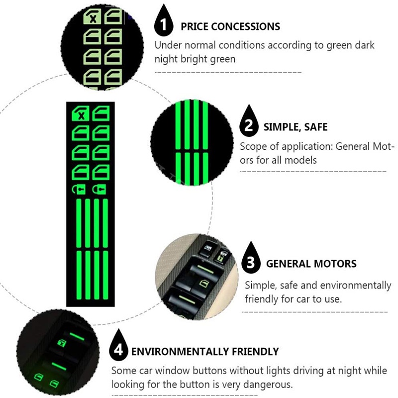 Car window Door Switch Luminous Sticker Set Button Night Safety Fluorescent Decals Glow Instructions Sign Accessories