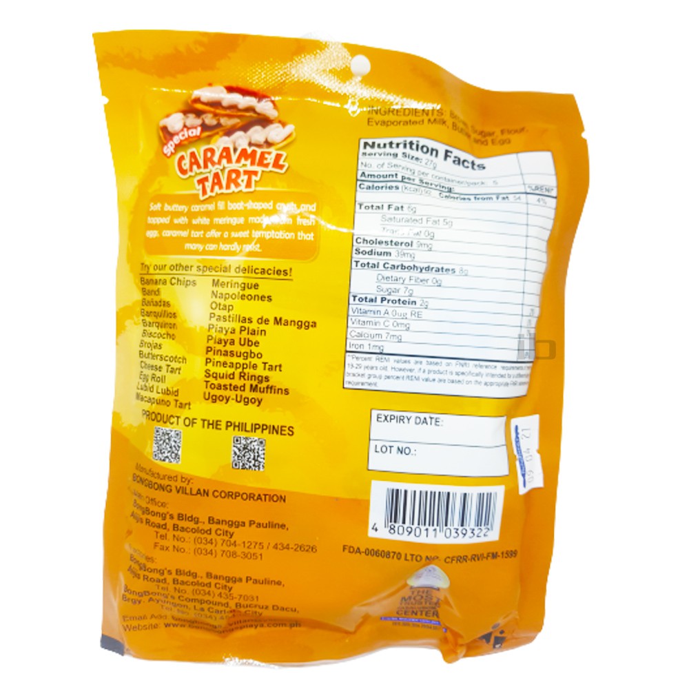 Caramel Tart 3 Packs | Bongbong's Finest Delicacies | Pasalubong | Snacks Biscuits | Caramel Flavor