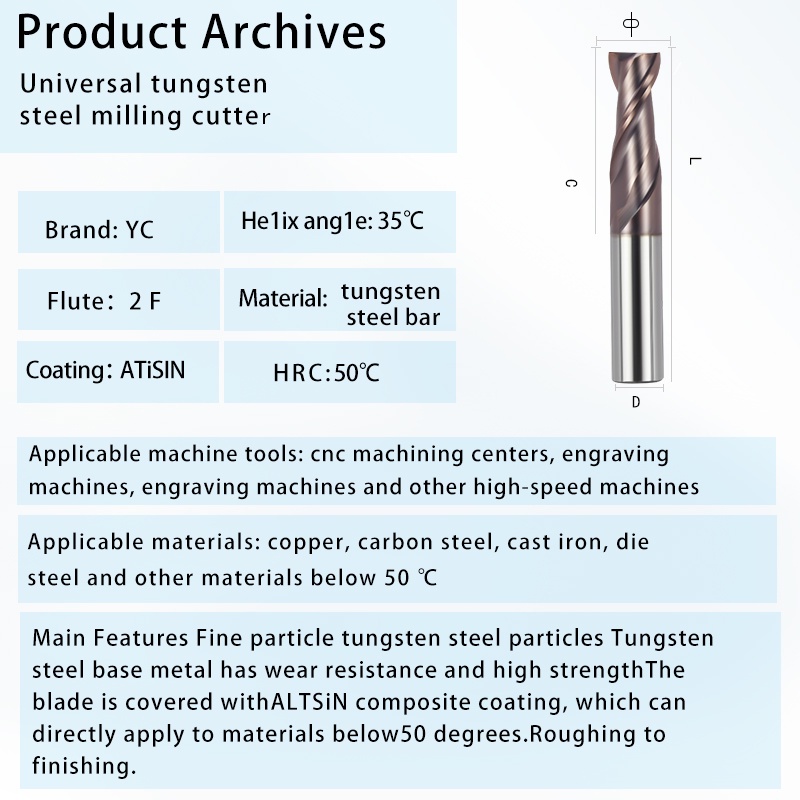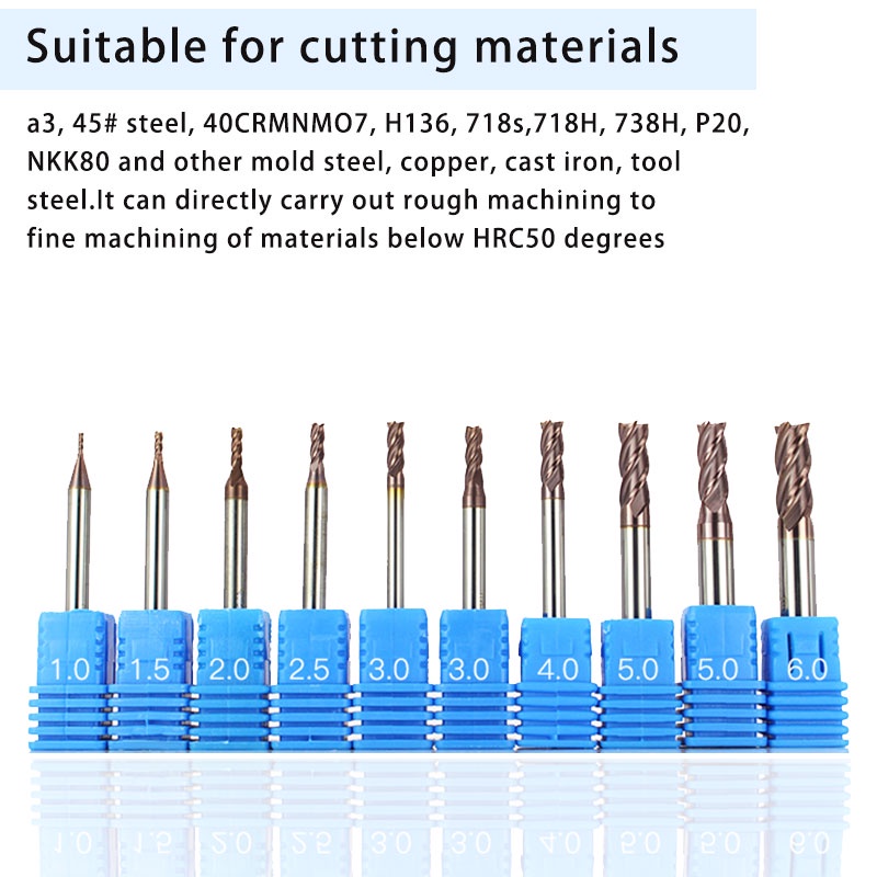 Carbide End Mill 2 Flute Milling Cutter HRC55 1 2 4 5 6 8 10 12mm Alloy Coating Tungsten Steel Cutting Tools CNC Machine