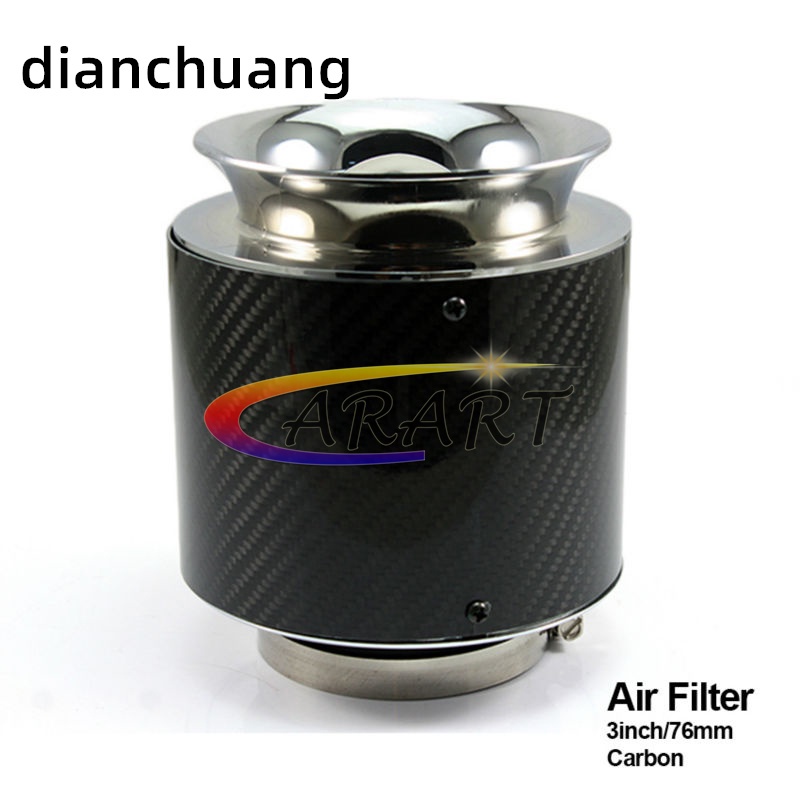 Carbon 3Inch/76mm Air Filter Supercharger Hood Air Intake Kit High Power Sports Fiber Filter Mushroom Head Universal