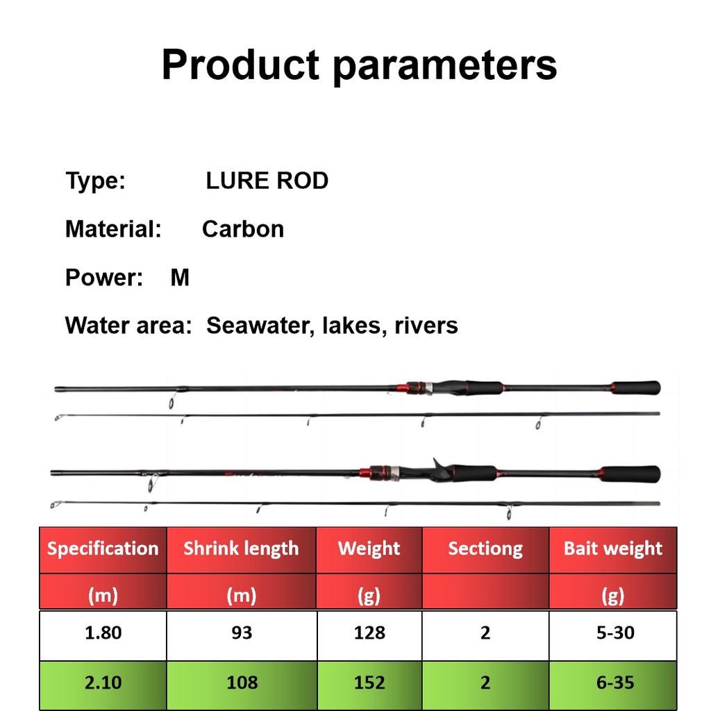 Carbon Fibre Lure Rod Set Fishing Rod M Power Spinning Casting Fishing Rod Set Rod For Fishing
