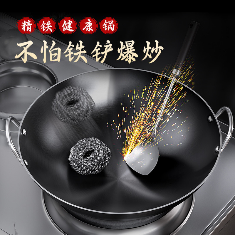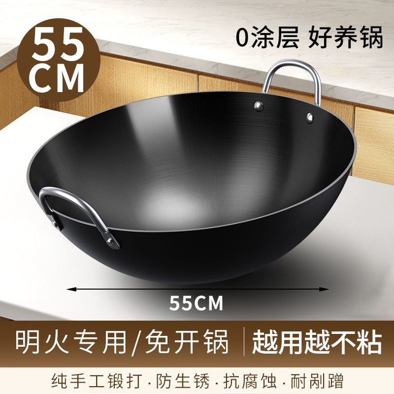 Carbon Steel Wok, Big Size Wok Pan, Woks & Stir-Fry Pans No Chemical Coated Wok for Gas, Round Bottom Iron Wok